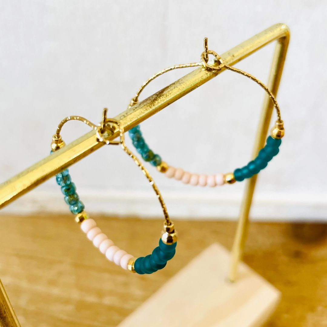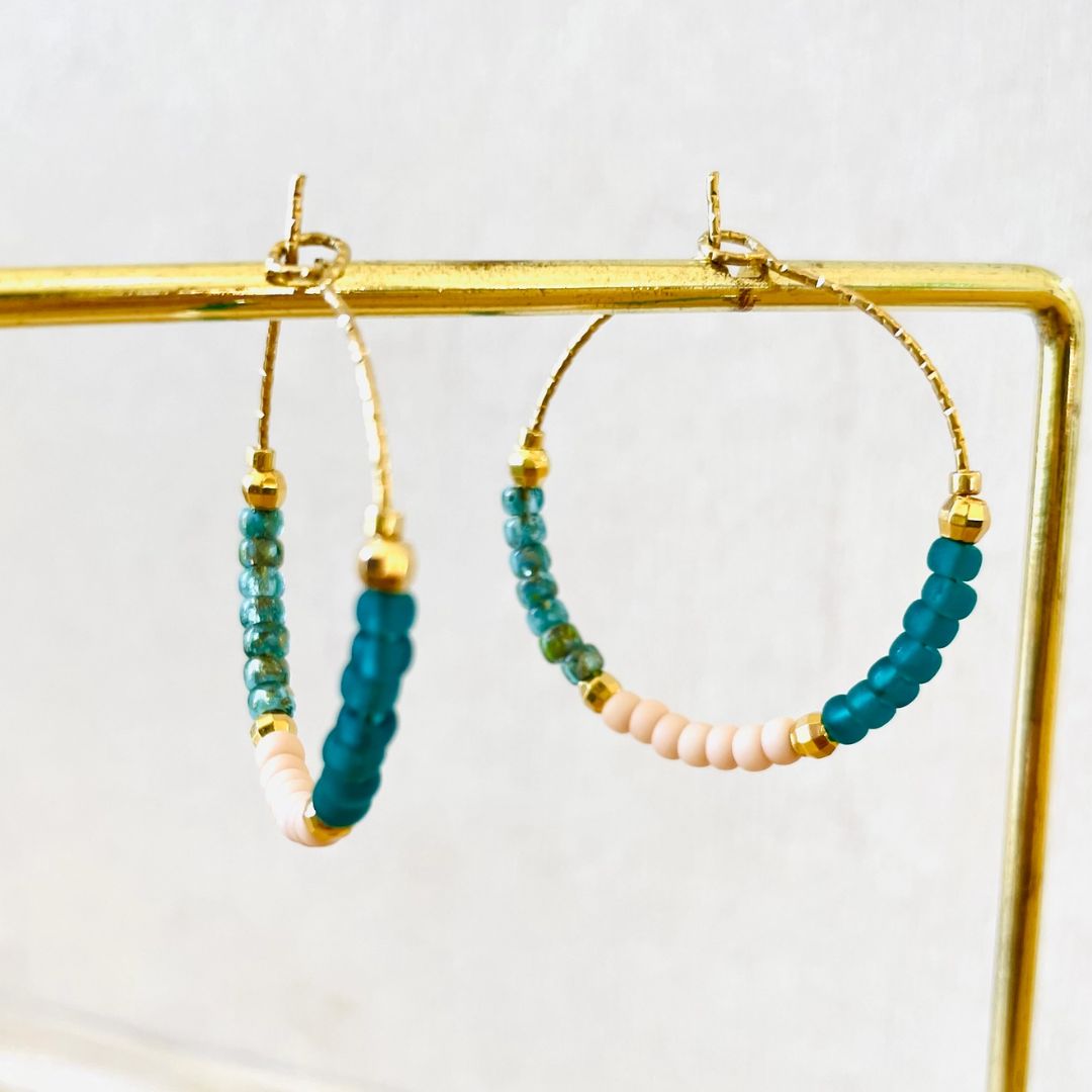 Stilvolle Creolen mit Miyuki Perlen in Türkis und Rosa