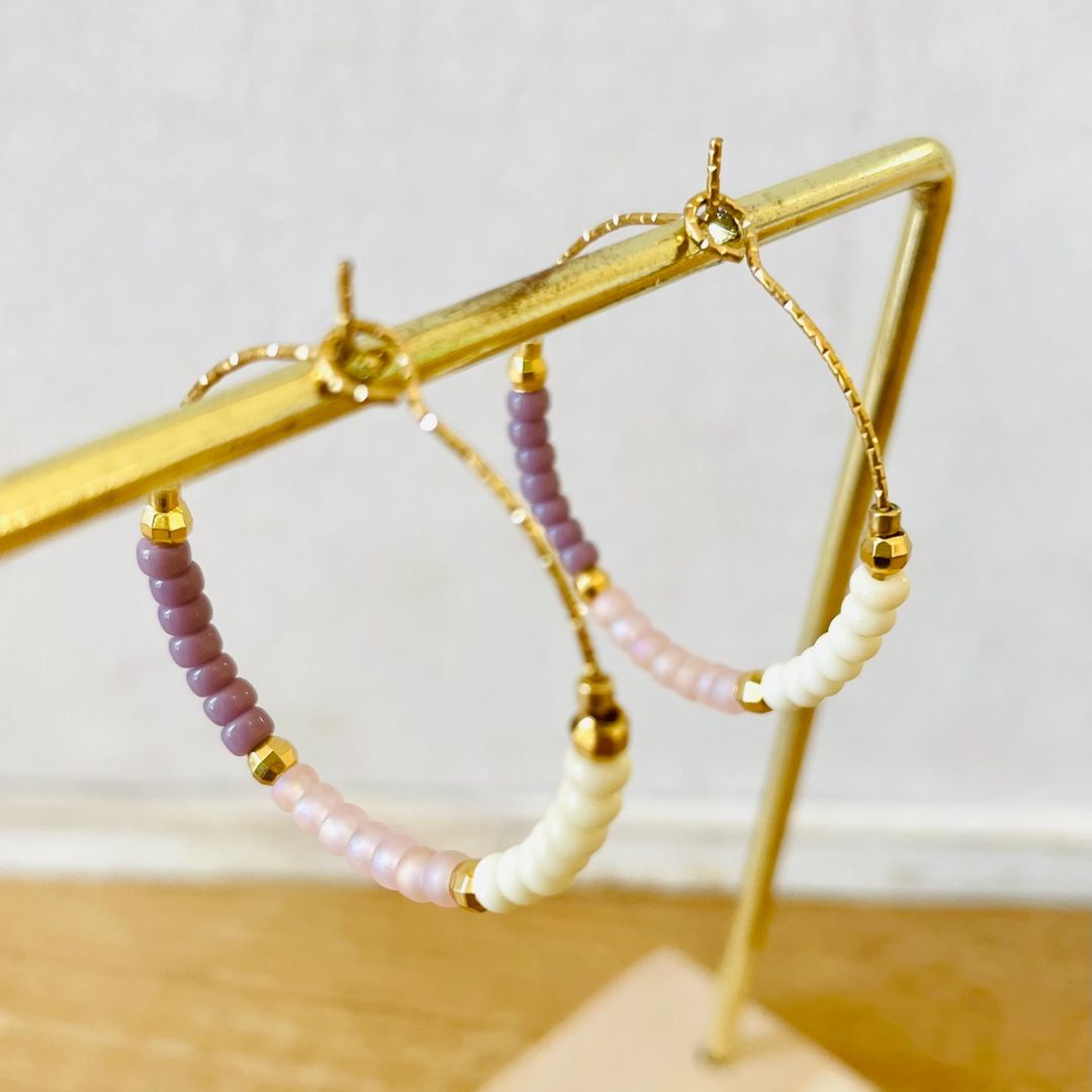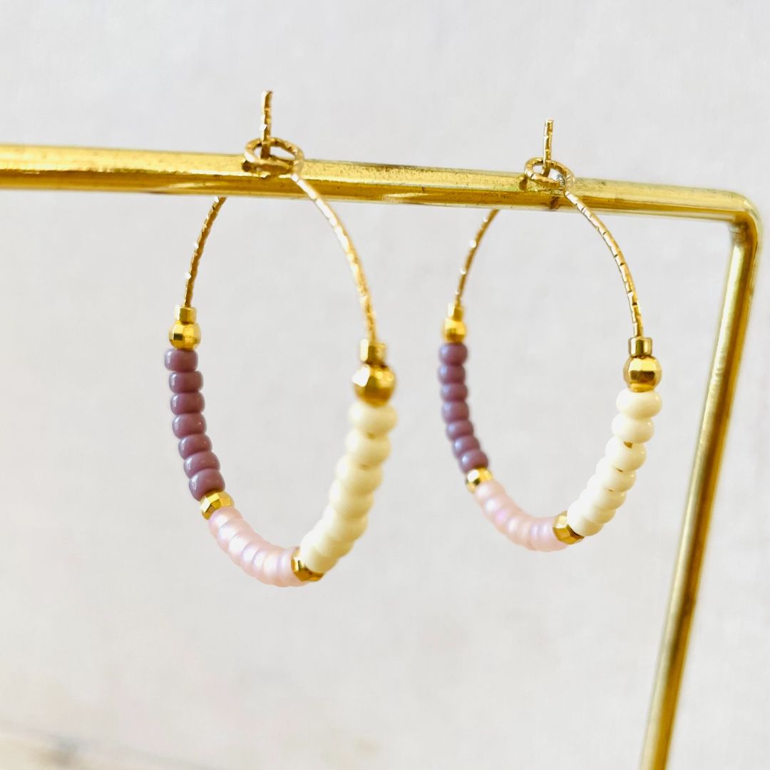 Stilvolle Creolen mit Miyuki Perlen in sanften Flieder- und Beigetönen