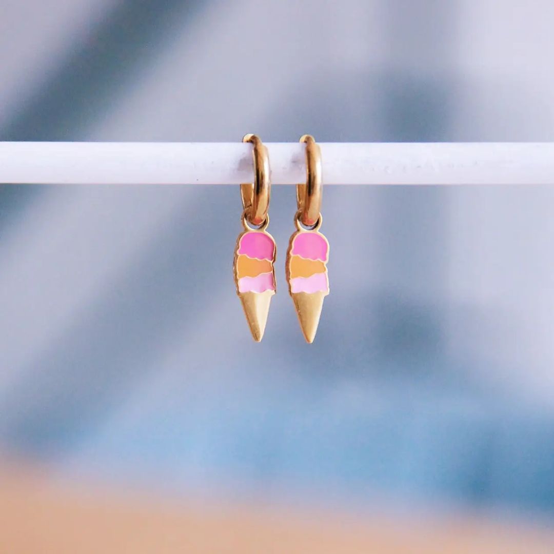 Damen Ohrringe mit Softeis Anhängern – Vergoldete Creolen für deinen individuellen Style