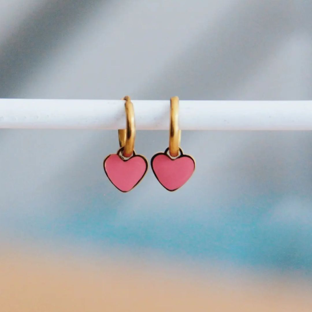 Die rosa/goldenen Herzanhänger lassen sich hervorragend zu Pastellfarben, Weiß oder Schwarz kombinieren. Trage sie zu einem leichten Sommerkleid oder zu einem eleganten Blazer – sie verleihen dir immer eine feminine und elegante Ausstrahlung. Für den Alltag kannst du die Creolen ohne Anhänger tragen und genießt den minimalistischen Look, der dennoch Aufmerksamkeit erregt.