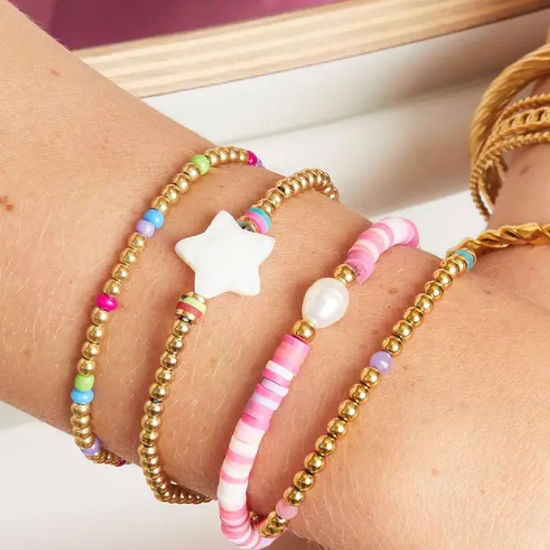 Die goldenen und bunten Perlen sind sorgfältig ausgewählt und verleihen dem Armband einen Hauch von Luxus und modischer Eleganz. Jedes Detail wurde mit Sorgfalt verarbeitet, um sicherzustellen, dass du ein Produkt von höchster Qualität erhältst.