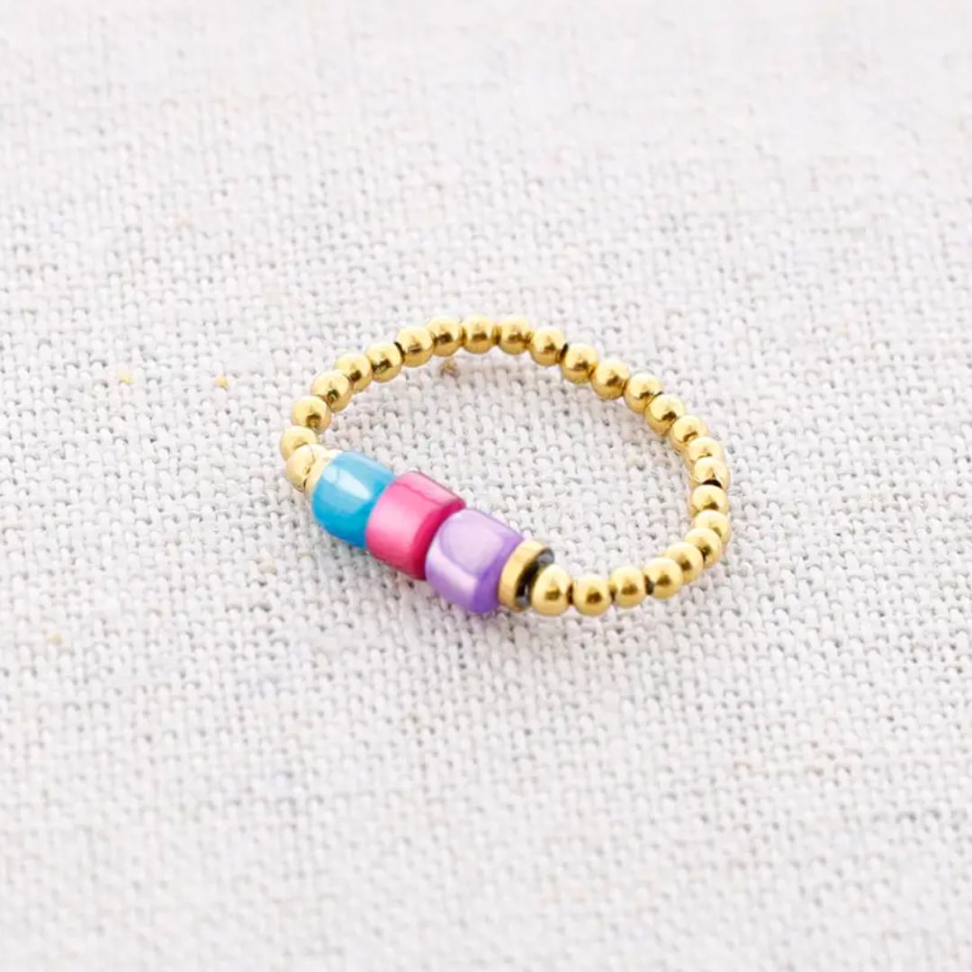 Damen Ring elastisch mit Tube Steinen gold/multicolor