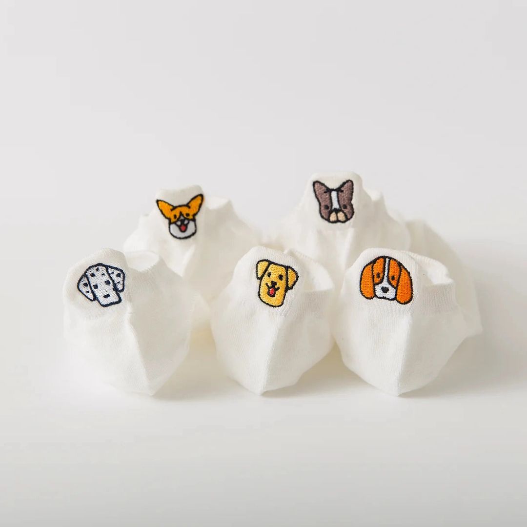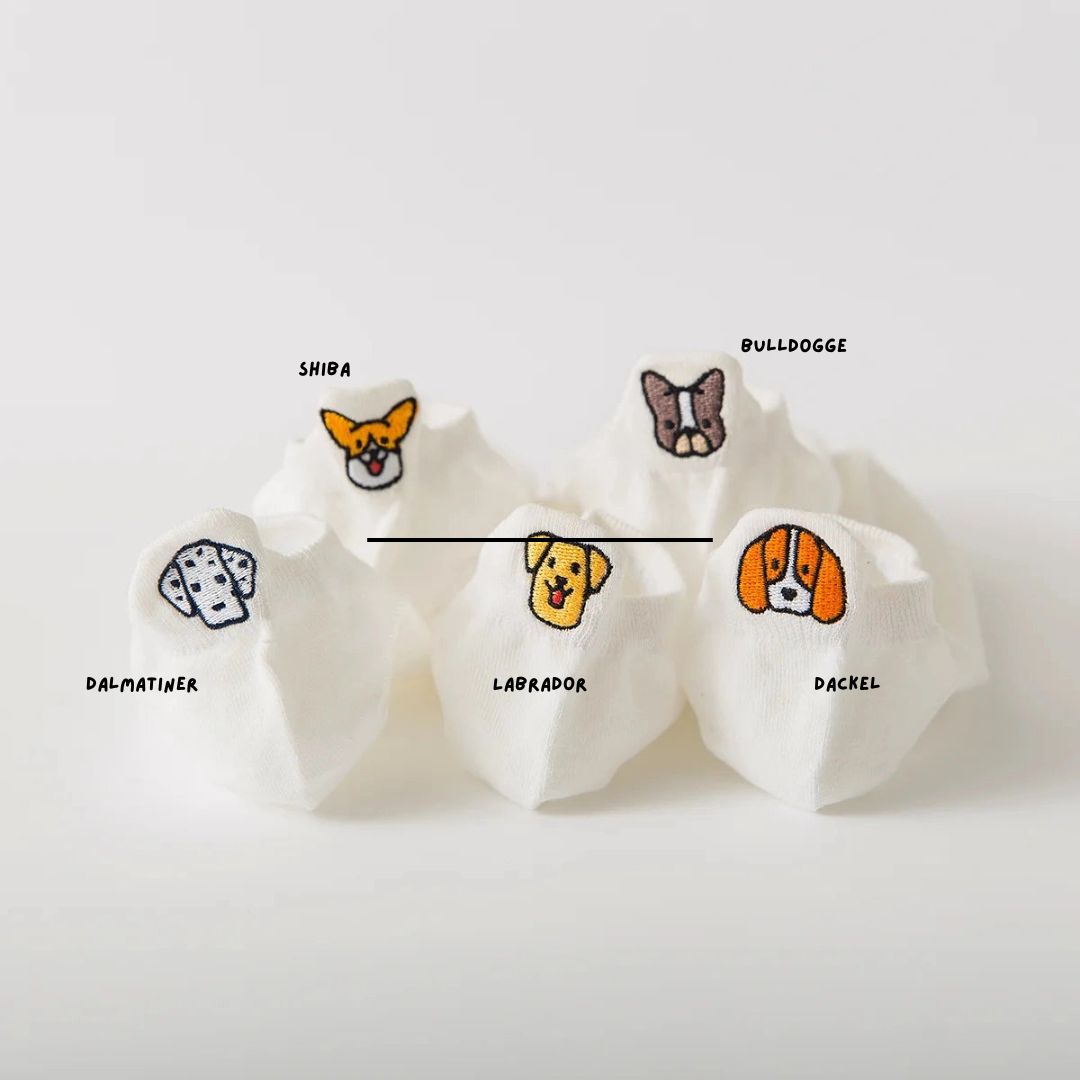 Mit dieser Kollektion von Hundekopf-Socken sind unsere Hundefreunde auf unseren Socken willkommen! Diese originellen Socken mit ihren kleinen Laschen werden alle Hundeliebhaber begeistern. Schluss mit langweiligen Socken und Blasen an den Fersen! Alle unsere Socken sind von hoher Qualität, kombiniert mit subtilen Illustrationen und originellen Designs.