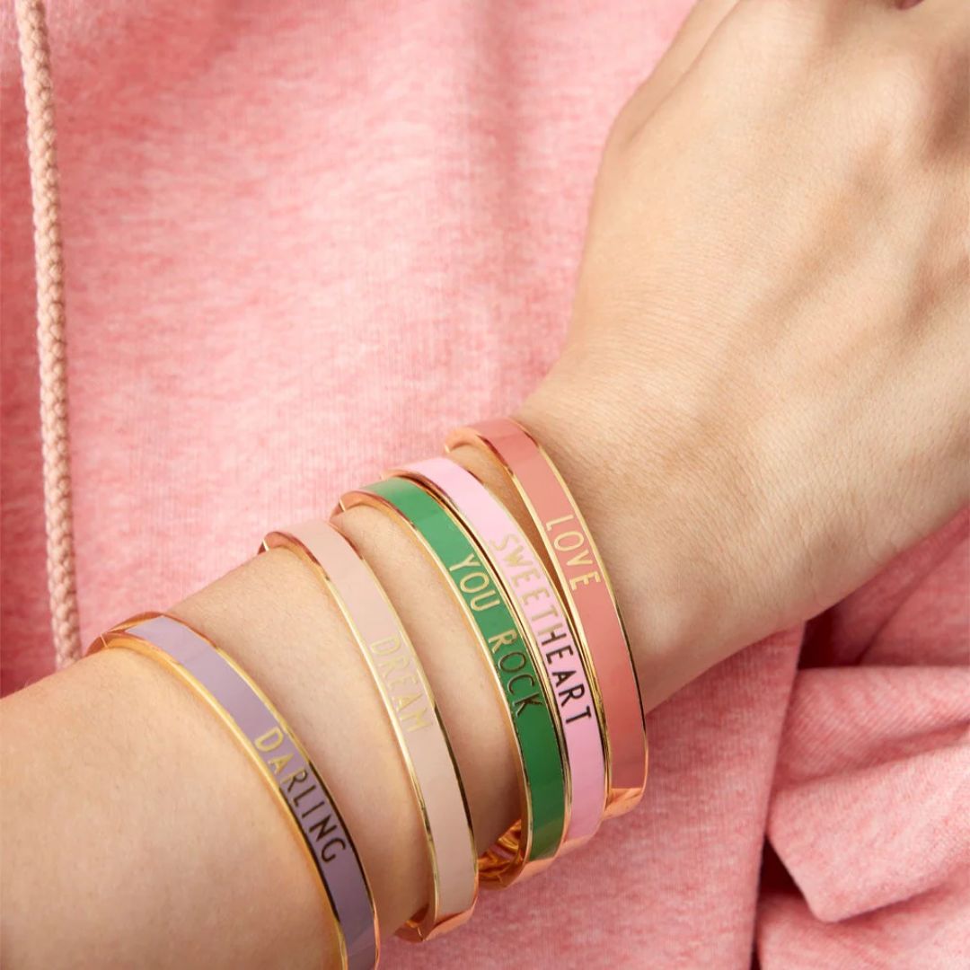 Stimmungsaufheller und stilvolles Accessoire - was kann man daran nicht lieben? Dieser trendige und entzückende Statement-Armreif spricht für sich. Erhältlich in einer Vielzahl bezaubernder Farben mit liebevollen Botschaften, geprägt in Emaille, ist dieser Armreif ein wahrer Blickfang.