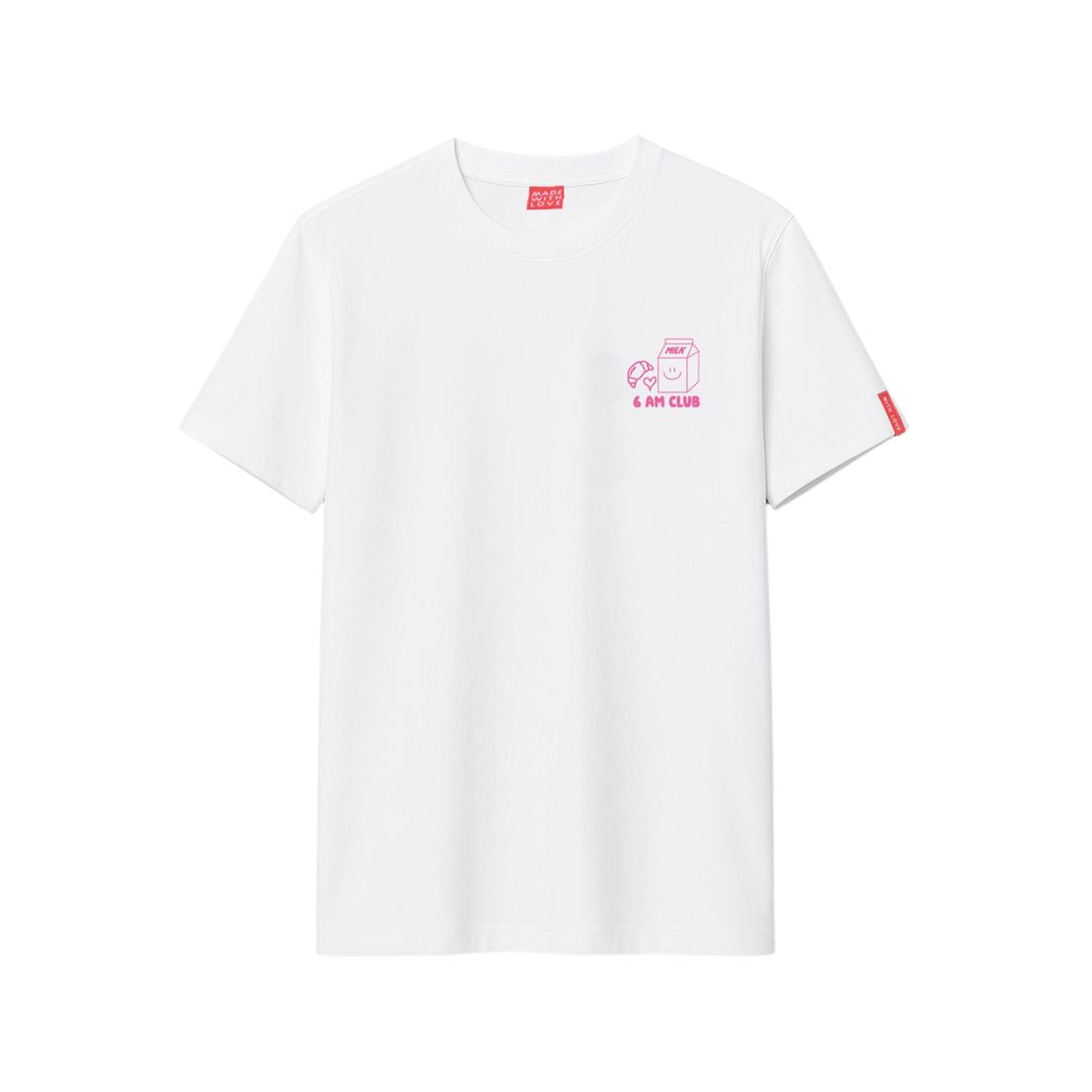 T-Shirt „Coffee before Chaos“ – für Erwachsene Dieses weiße unisex T-Shirt bringt gute Laune in deinen Alltag: Vorn mit dem Spruch 6 am Club, hinten mit coolem Coffee Becher und dem Motto „Coffee before Chaos evolves - every morning 6 am“. In frischem Pink, aus weicher Baumwolle – perfekt für alle, die Liebe und Kaffee feiern. Aus 100% Baumwolle Größe: Unisex