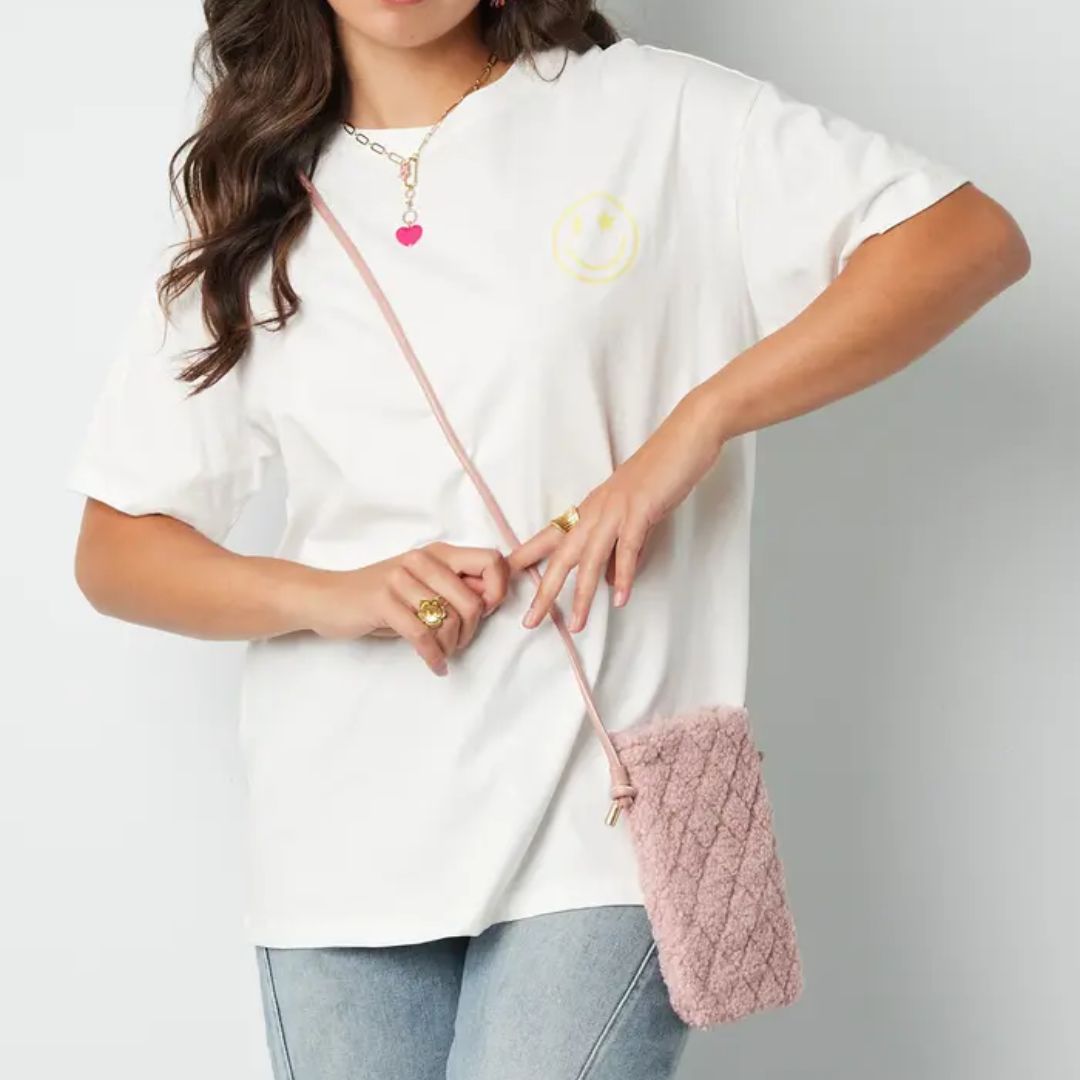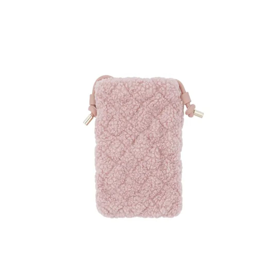 Damen Telefontasche Teddyfell rosa