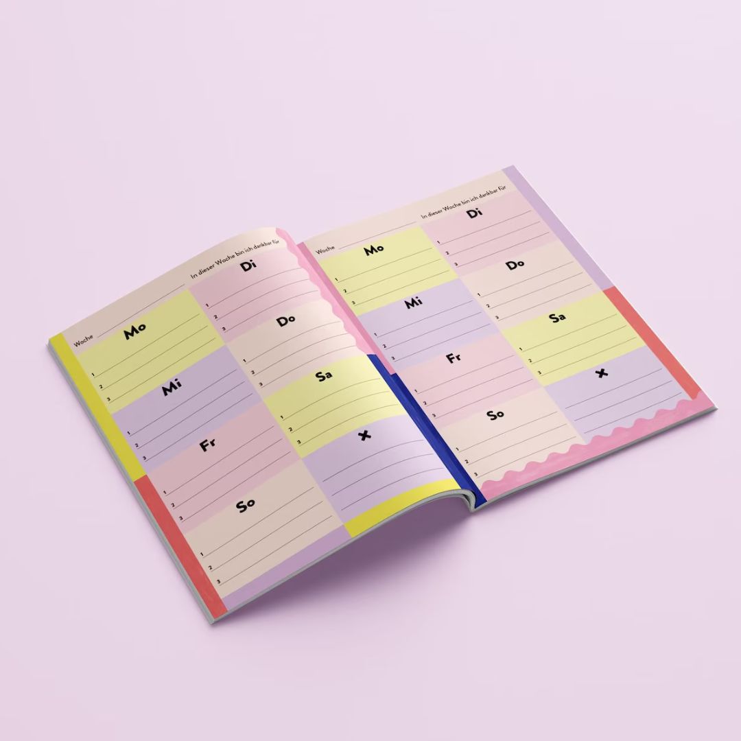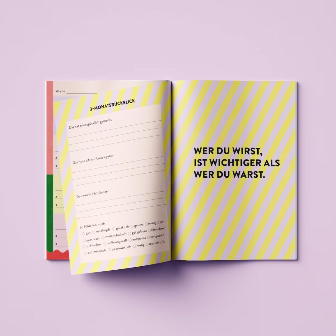 - Reflektieren: Nutze die vierteljährlichen Reflexionsseiten, um deine Fortschritte zu dokumentieren und neue Erkenntnisse zu gewinnen.