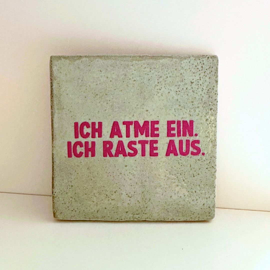 • Designkachel | Fliese 'Ich atme ein. Ich raste aus.' hellgrün/purpur