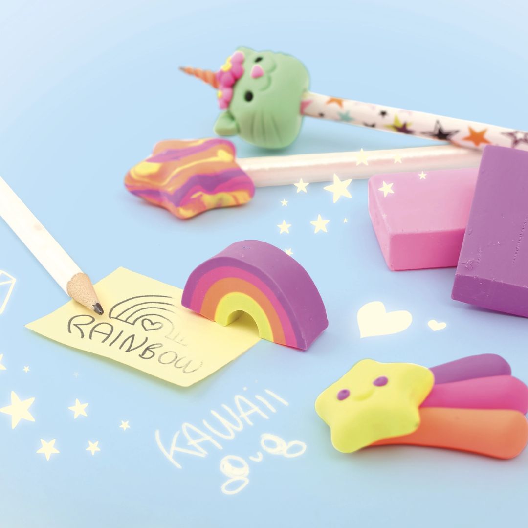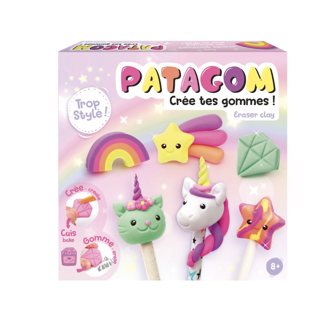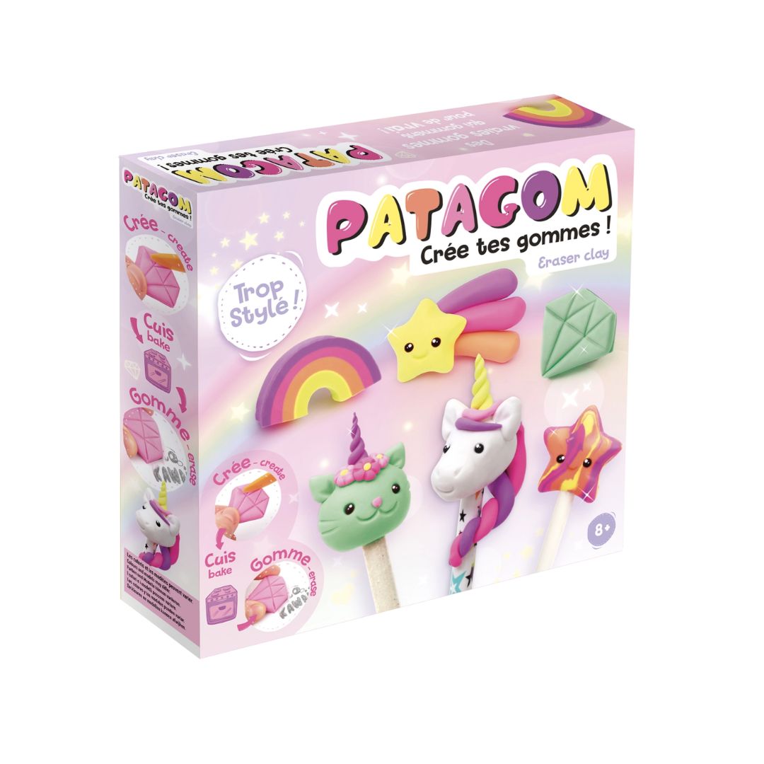 Patagom ist eine Modelliermasse zur Herstellung von Radiergummis. Die Farben sind miteinander mischbar. Forme deinen Teig in die gewünschte Form, bitte einen Erwachsenen, ihn 15 Minuten lang bei 120° C in den Ofen zu stellen, lasse ihn abkühlen. Dein Radiergummi ist fertig! Diese Einhornbox ist magisch, alles wird bereitgestellt, um dein Einhorn-Universum zu erschaffen!