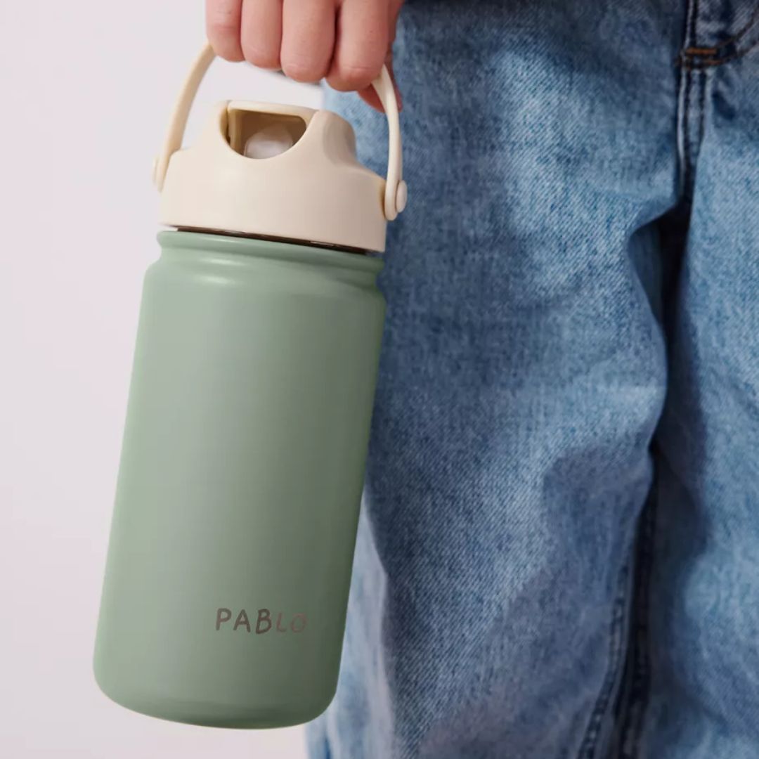 Eine Wasserflasche ist ein unverzichtbares Accessoire für Kinder – ob in der Schule, beim Spaziergang, auf Reisen oder neben dem Bett an heißen Nächten. Sie brauchen sie immer und überall! Wenn sie zusätzlich praktisch, hübsch und personalisiert ist, ist sie das perfekte Geschenk für dein Kind. Unsere grüne Trinkflasche vereint Funktion und Design und passt sich jedem Abenteuer deines Kindes an.
