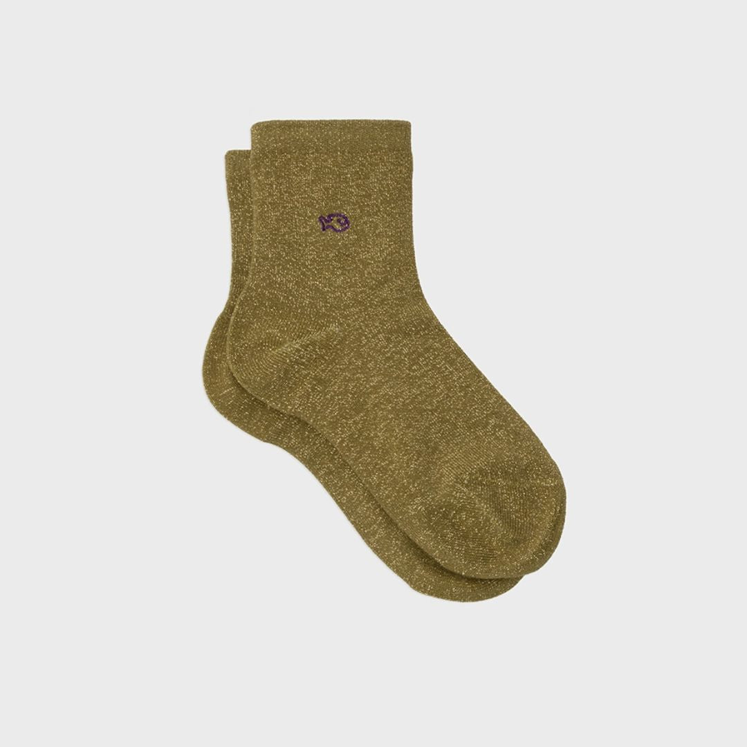 Unsere olivgrünen Glitzersocken sind nicht nur ein optisches Highlight, sondern auch praktisch und langlebig. Der subtile Glitzereffekt sorgt für einen eleganten Look, ohne dabei aufdringlich zu wirken. Dank der knöchelhohen Passform kannst du sie vielseitig kombinieren – ob zu Sneakern, Boots oder sogar zu eleganten Schuhen.