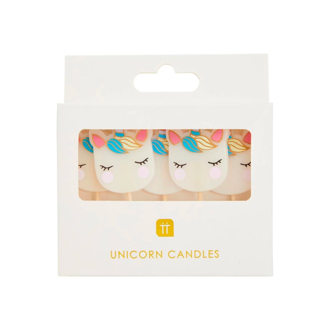In einer Packung erhältst du fünf zauberhafte Einhorn-Kerzen – ideal, um eine große Torte oder mehrere Cupcakes zu dekorieren.