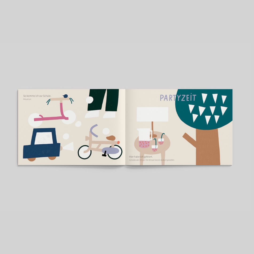 - Format und Seitenanzahl: Das Album hat ein handliches DIN A5 Querformat und umfasst 24 Seiten, die reichlich Platz für Erinnerungen, Fotos und Zeichnungen bieten.