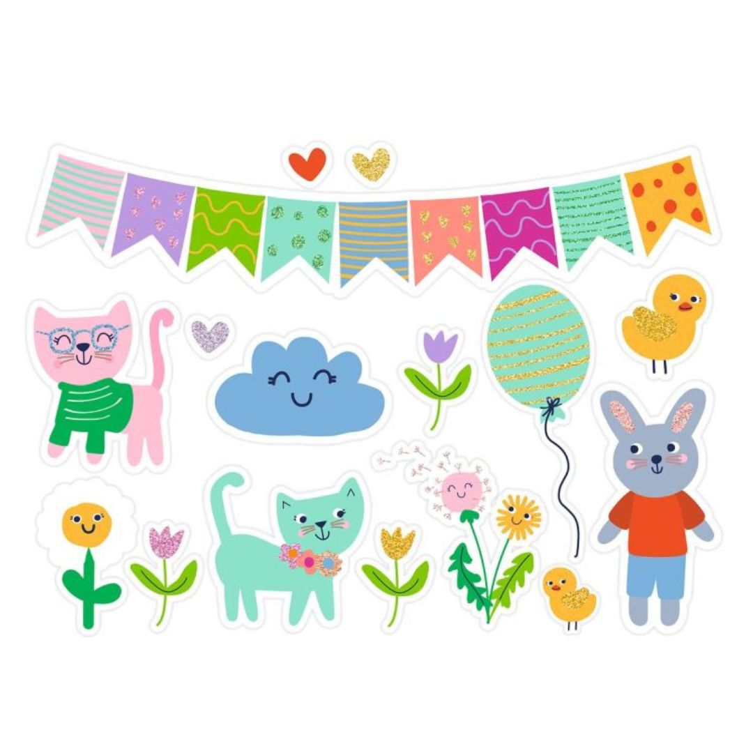 + 35 farbenfrohe Sticker mit Glitzerveredelung