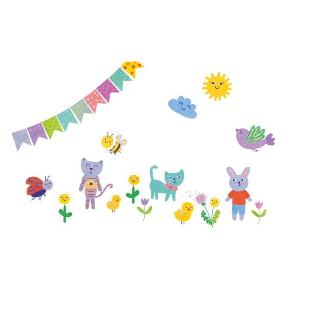 Ob für Fenster, Türen oder Spiegel – die farbenfrohen Motive wie Blumen, Tiere und bunte Girlanden machen jede Dekoration zu einem Highlight. Perfekt als saisonale Dekoration im ganzen Haus.