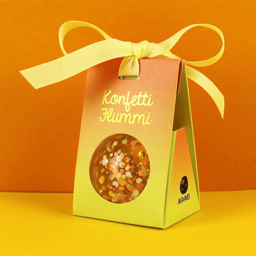Flummiball mit Konfetti gold/zitronengelb/aprikot