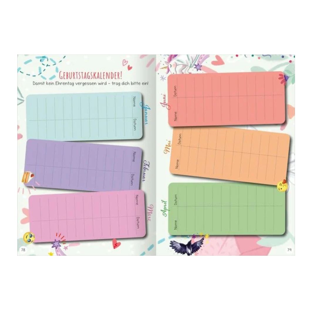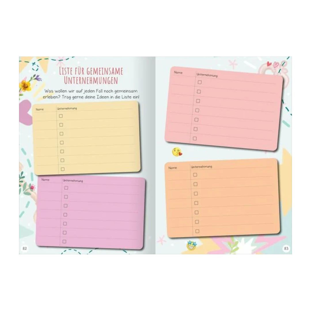 Damit du keinen Geburtstag deiner Freundinnen mehr vergisst, enthält das Freundebuch auch einen praktischen Geburtstagskalender. Hier kannst du alle wichtigen Daten eintragen und hast sie immer im Blick. Darüber hinaus gibt es eine extra Seite für gemeinsame Unternehmungen. Dort könnt ihr zusammen Ideen sammeln, was ihr unbedingt noch gemeinsam erleben möchtet – von kleinen Abenteuern bis zu großen Träumen.