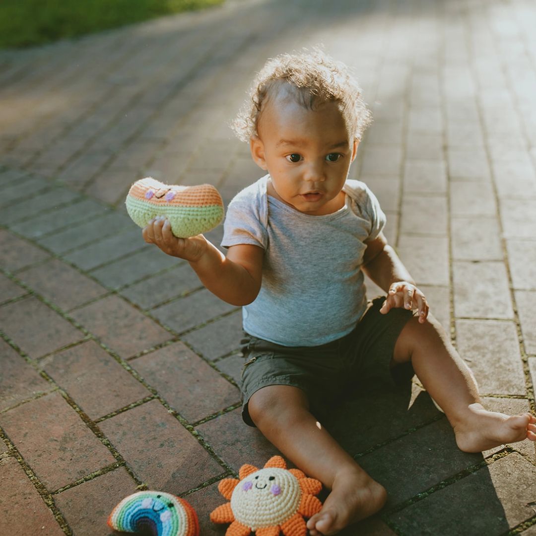 Es gibt viele gute Gründe, warum die Häkel-Babyrassel Sonne das perfekte Babyspielzeug ist: