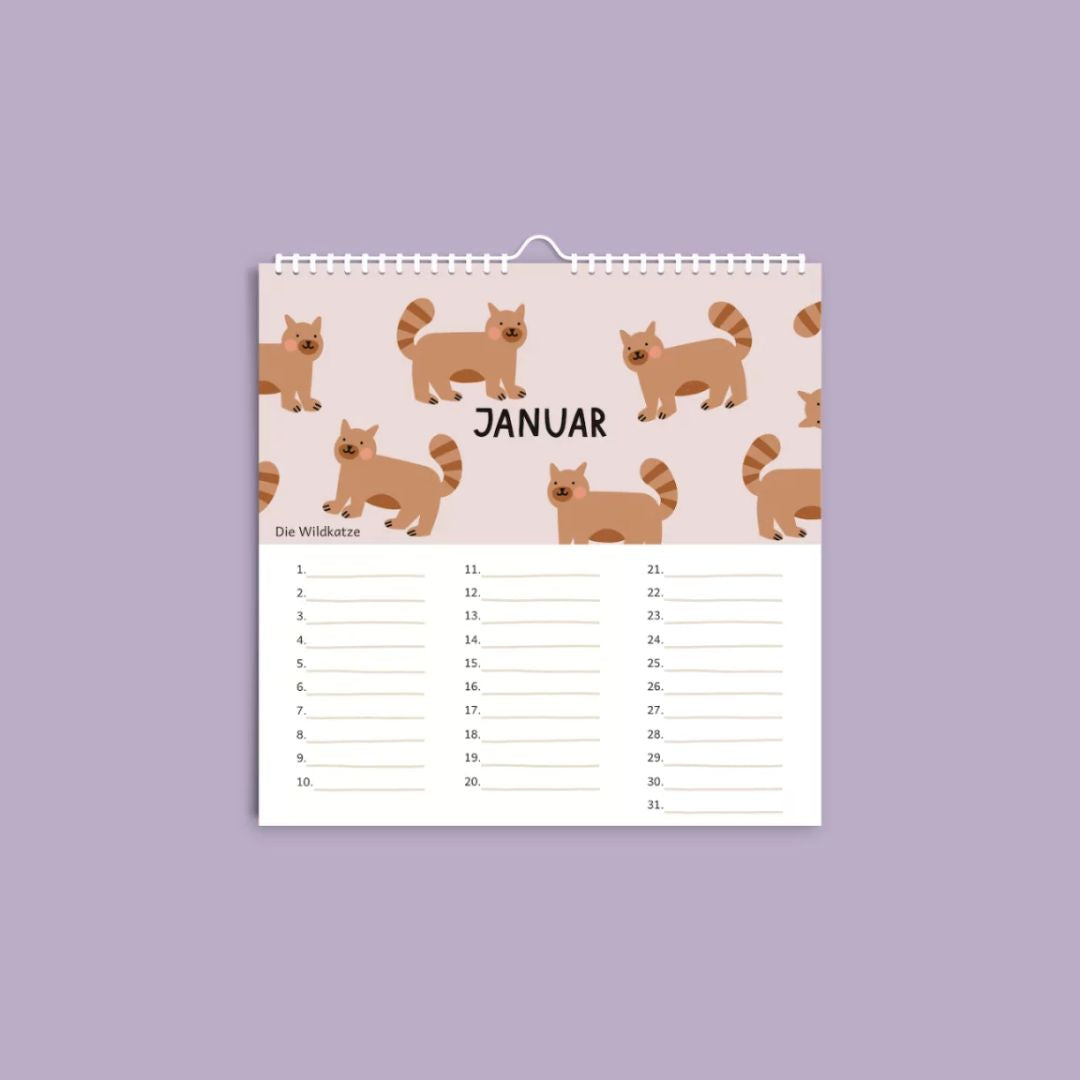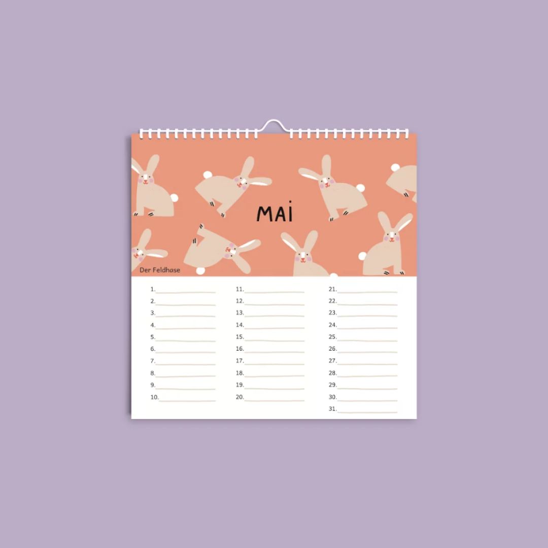 Praktisches Format: Mit den Maßen 210x210 mm ist der Kalender handlich und passt perfekt an jede Wand. Er bietet genug Platz, um Geburtstage und wichtige Ereignisse einzutragen, ohne zu viel Platz einzunehmen.