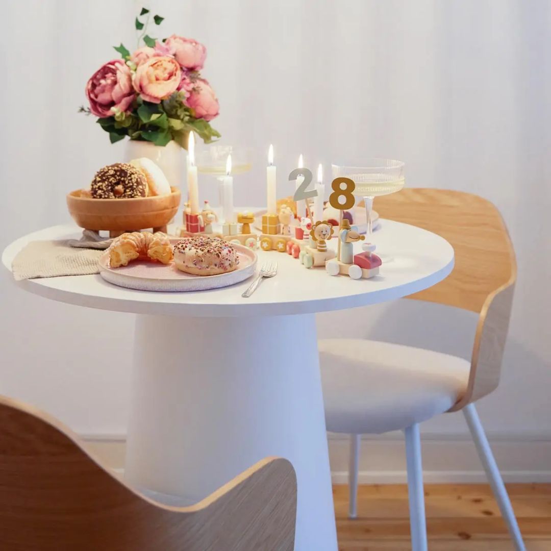 Die Farbgestaltung des Geburtstagszugs ist harmonisch und modern zugleich. Die liebevoll ausgewählten Farbtöne passen zu jedem Einrichtungsstil und jeder Tischdekoration. Ob klassisch, verspielt oder minimalistisch – der Geburtstagszug Holz Berry fügt sich nahtlos in jede Umgebung ein und lässt sich flexibel kombinieren.