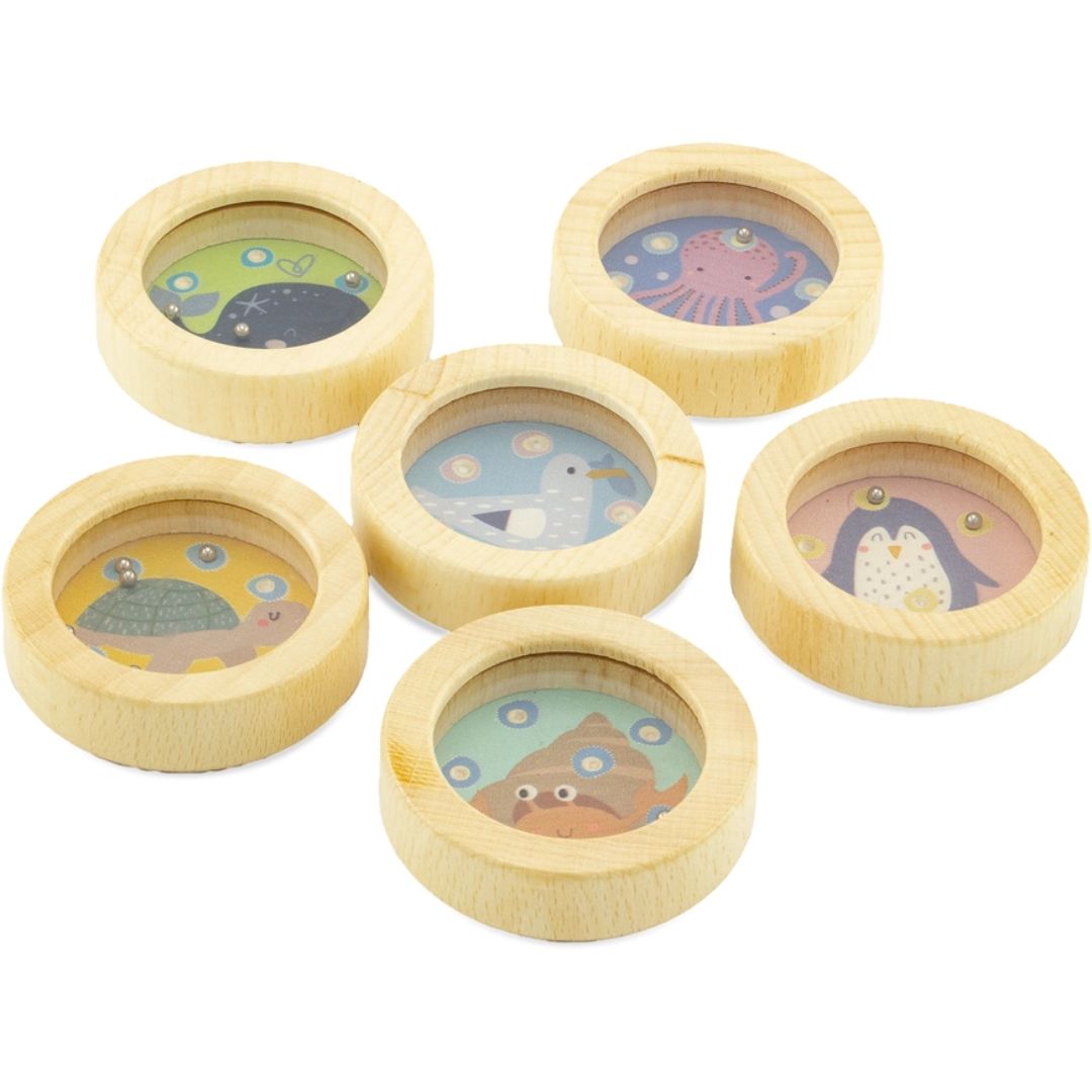 Entdecke mit unserem Ballgeduldsspielen "Das Meer" eine Welt voller Spaß und Herausforderungen! Es gibt 6 verschiedene Designs mit 6 entzückenden Meerestieren, darunter einen Oktopus, einen Einsiedlerkrebs, ein Wal, eine Möwe, eine Schildkröte und ein Pinguin. Jedes Geduldsspiel besteht aus hochwertigem Holz mit einem Durchmesser von 5,8 cm, einem Kunststofffenster und 6 Metallkugeln. Dank der Filzbeschichtung auf der Unterseite verhindern die Spiele Kratzer auf Oberflächen und sind leicht zu tragen. Geeignet für Kinder ab 3 Jahren bieten diese Spiele stundenlangen Spaß und fördern gleichzeitig die Kreativität und Hand-Auge-Koordination deines Lieblings!