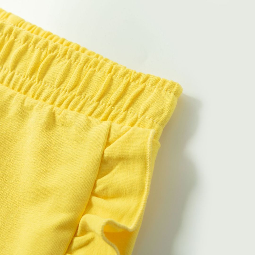Produktinformationen Gelbe Strickshorts für Mädchen mit Rüschen: