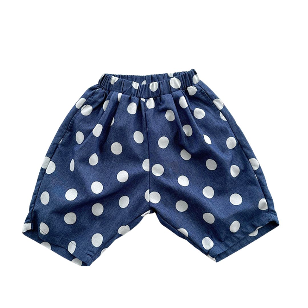 Entdecke die gepunktete Loose Pants 'Dotty' – Deine neue Lieblings-Sommerhose für Kinder in Blau mit weißen Punkten