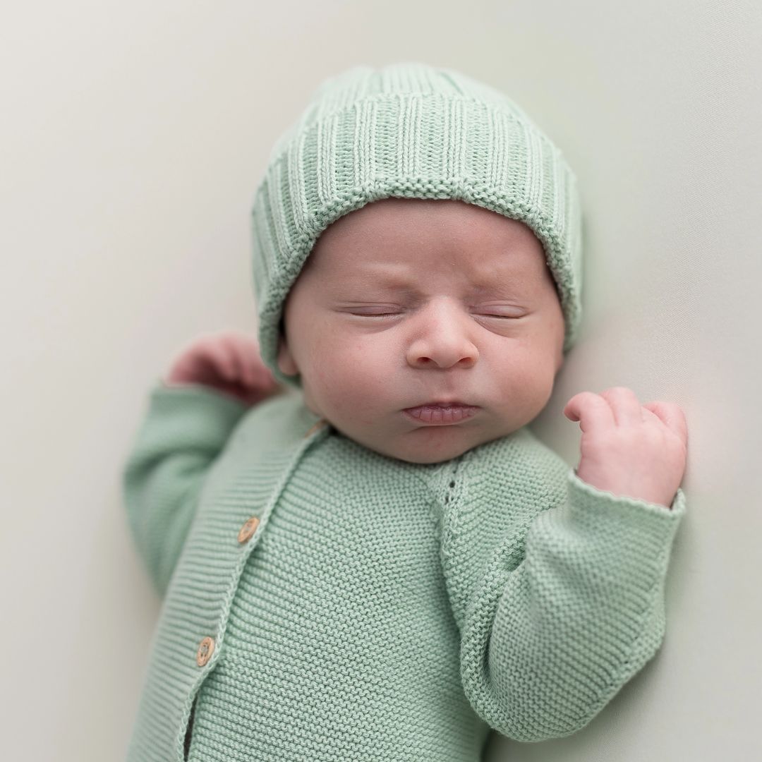 Eine Mütze für Babys bis 6 Monate aus Bio-Baumwolle aus unseren Werkstätten in Barcelona.