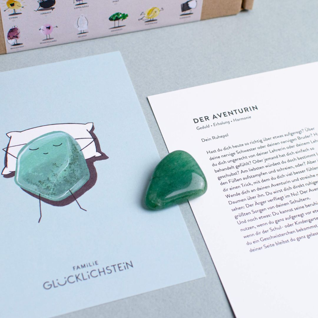 Große Veränderungen stehen bevor? Vielleicht steht der Schulbeginn an, oder du ziehst in eine neue Stadt. Möglicherweise erwartet deine Familie auch ein neues Mitglied, und du bist voller Aufregung und Unsicherheit? Der Aventurin schenkt dir in diesen Momenten die Kraft, ruhig zu bleiben. Mit seiner harmonisierenden Energie unterstützt er dich, die Situation mit Gelassenheit anzunehmen und deinen Mut zu bewahren. Wann immer du das Gefühl hast, dass dich eine Herausforderung überfordert, ist der Aventurin dein Fels in der Brandung.