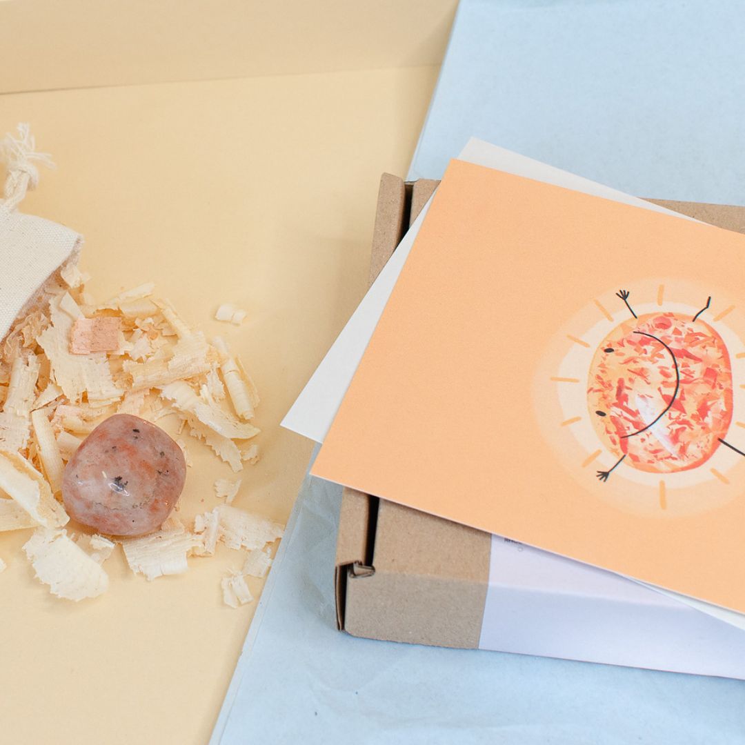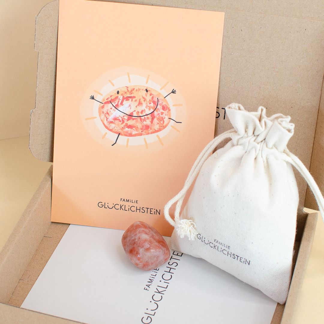 Der Sonnenstein ist nicht nur ein wertvoller Begleiter für dich selbst, sondern auch ein wunderbares Geschenk für deine Liebsten. Er kommt in einer ansprechenden Verpackung, die einen kleinen Karton, einen Jutebeutel und eine schöne Informationskarte enthält. So kannst du nicht nur Freude, sondern auch eine bedeutungsvolle Botschaft verschenken.
