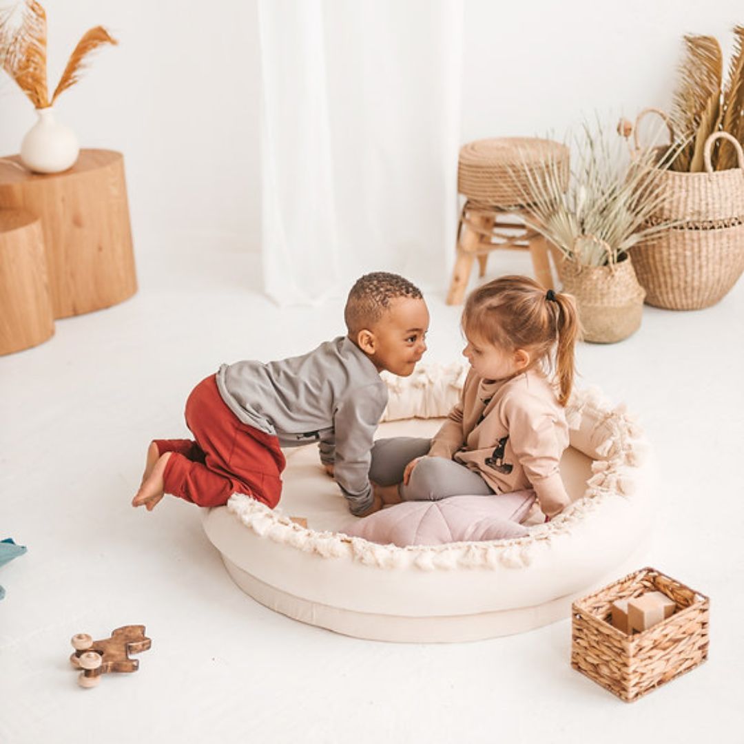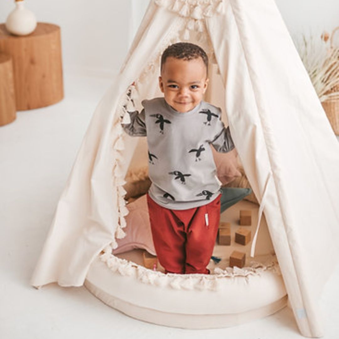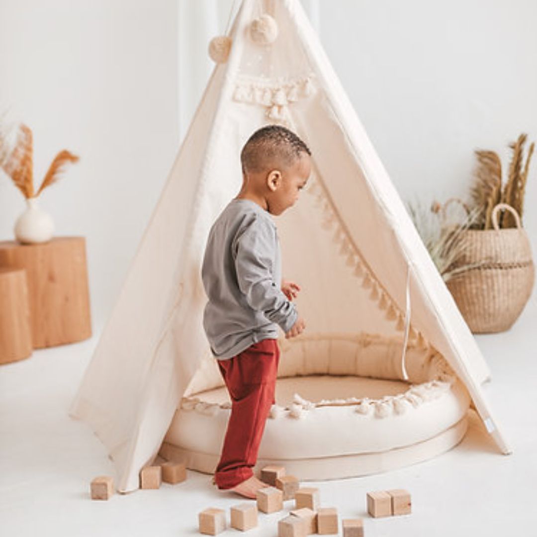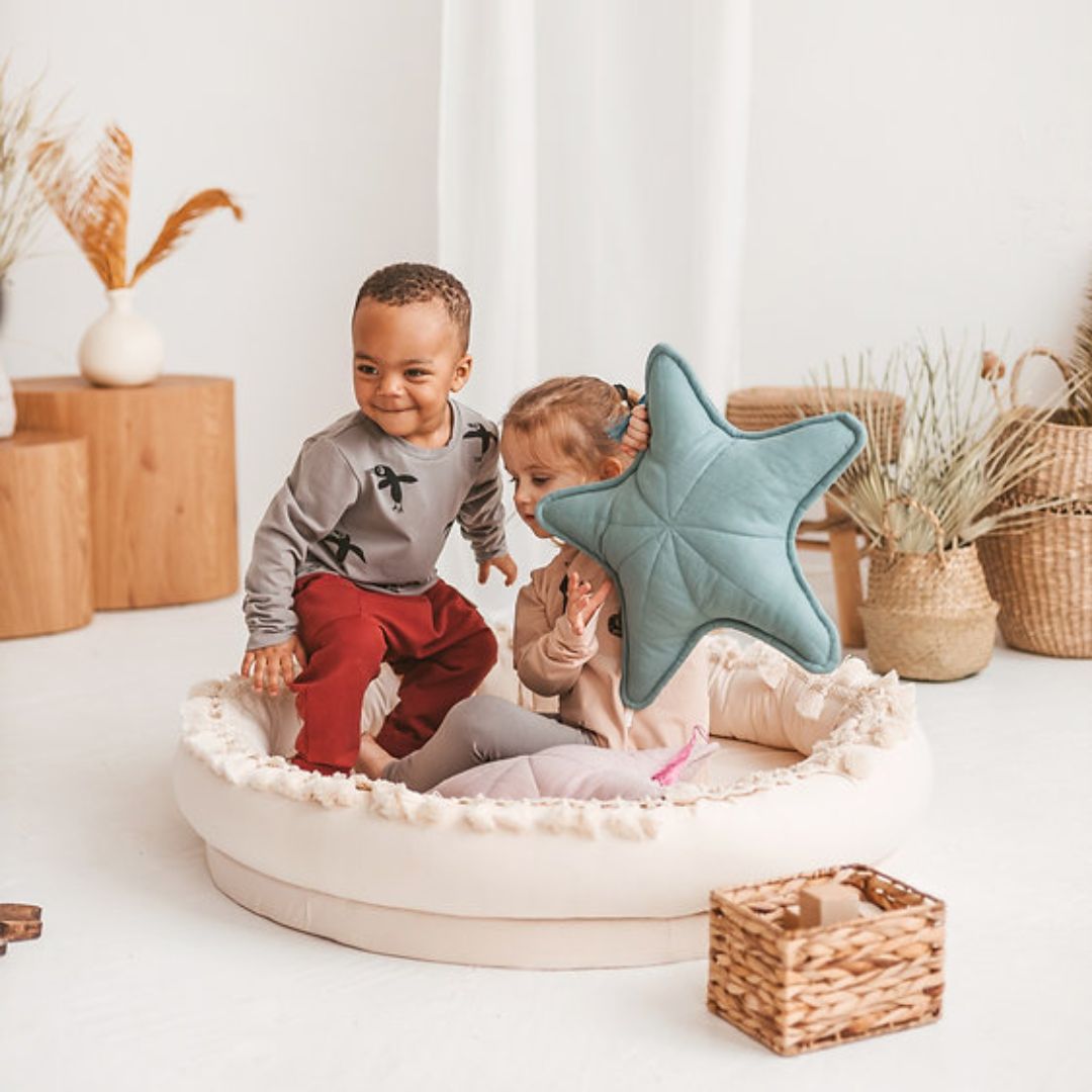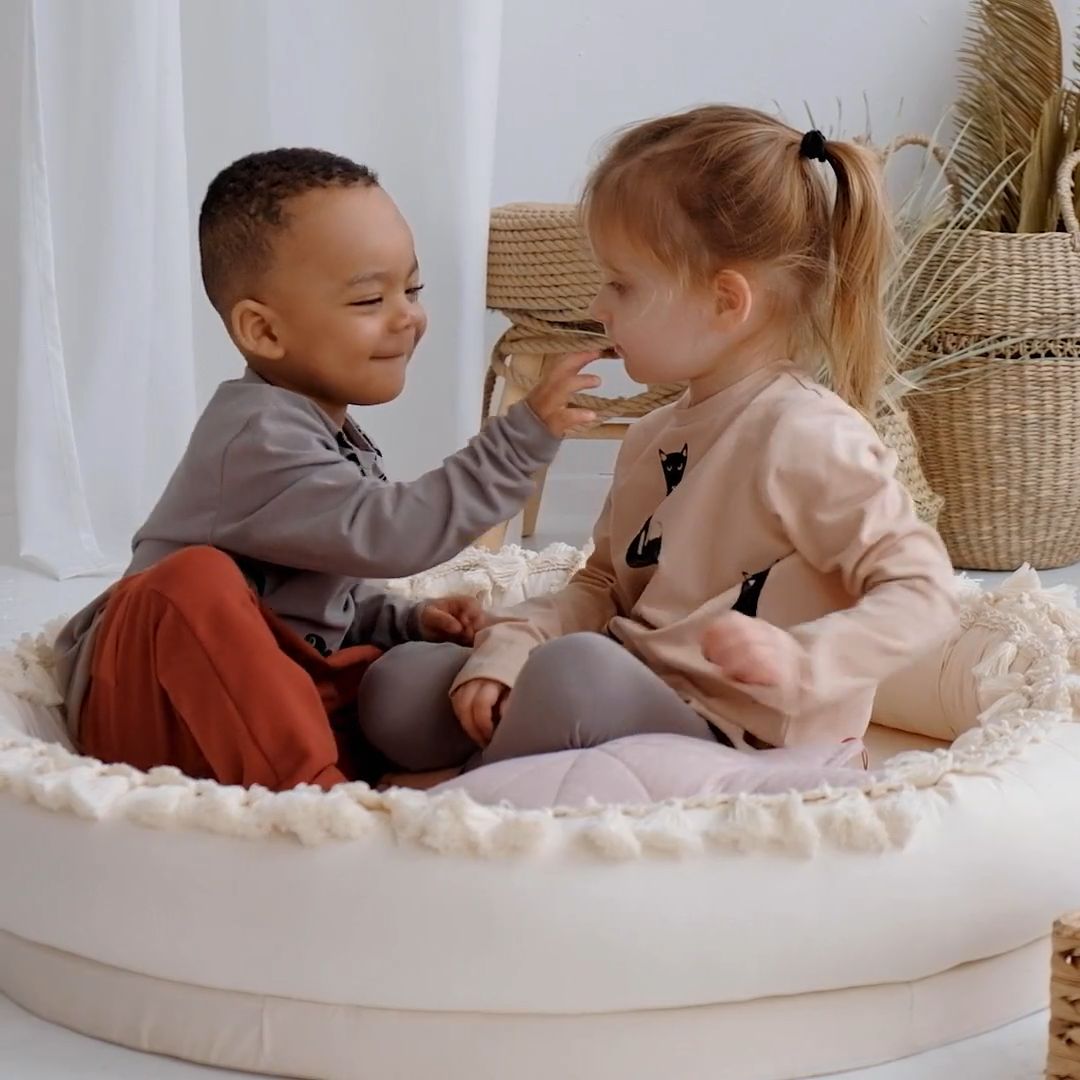 Verwende es als Kindernest als Baby-Lounge, Wickelstation oder zum Wechseln der Sachen. Kinder können hier spielen, sich ausruhen, lesen oder träumen. Es kann zum Faulenzen im ganzen Haus aufgestellt werden und im Sommer auf die Terrasse wandern. Die runde Kinderliege passt auch perfekt in unsere Tipi-Zelte.