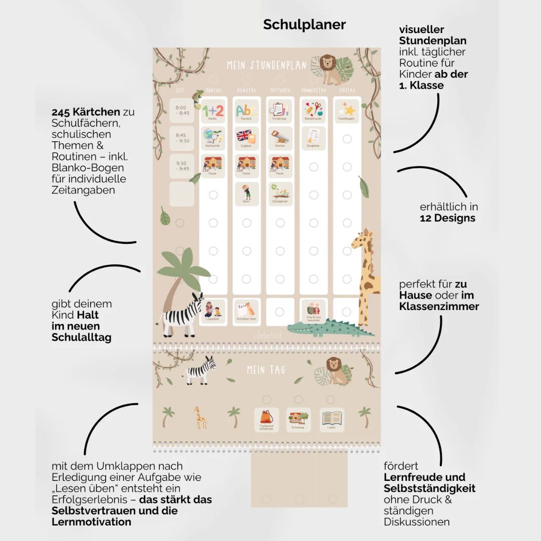 So wird Planen zum Erlebnis – der Schulalltag fühlt sich an wie eine kleine Safari-Expedition, bei der dein Kind selbst die Richtung bestimmt.