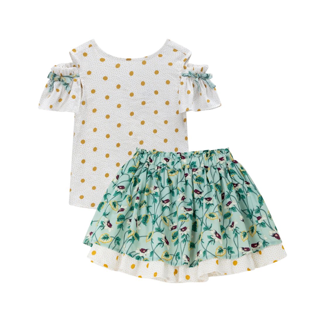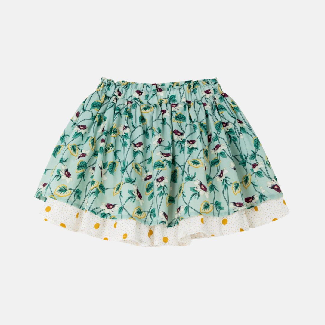 Produktinformationen Grüner bedruckter Mädchenrock Violette Blumen: