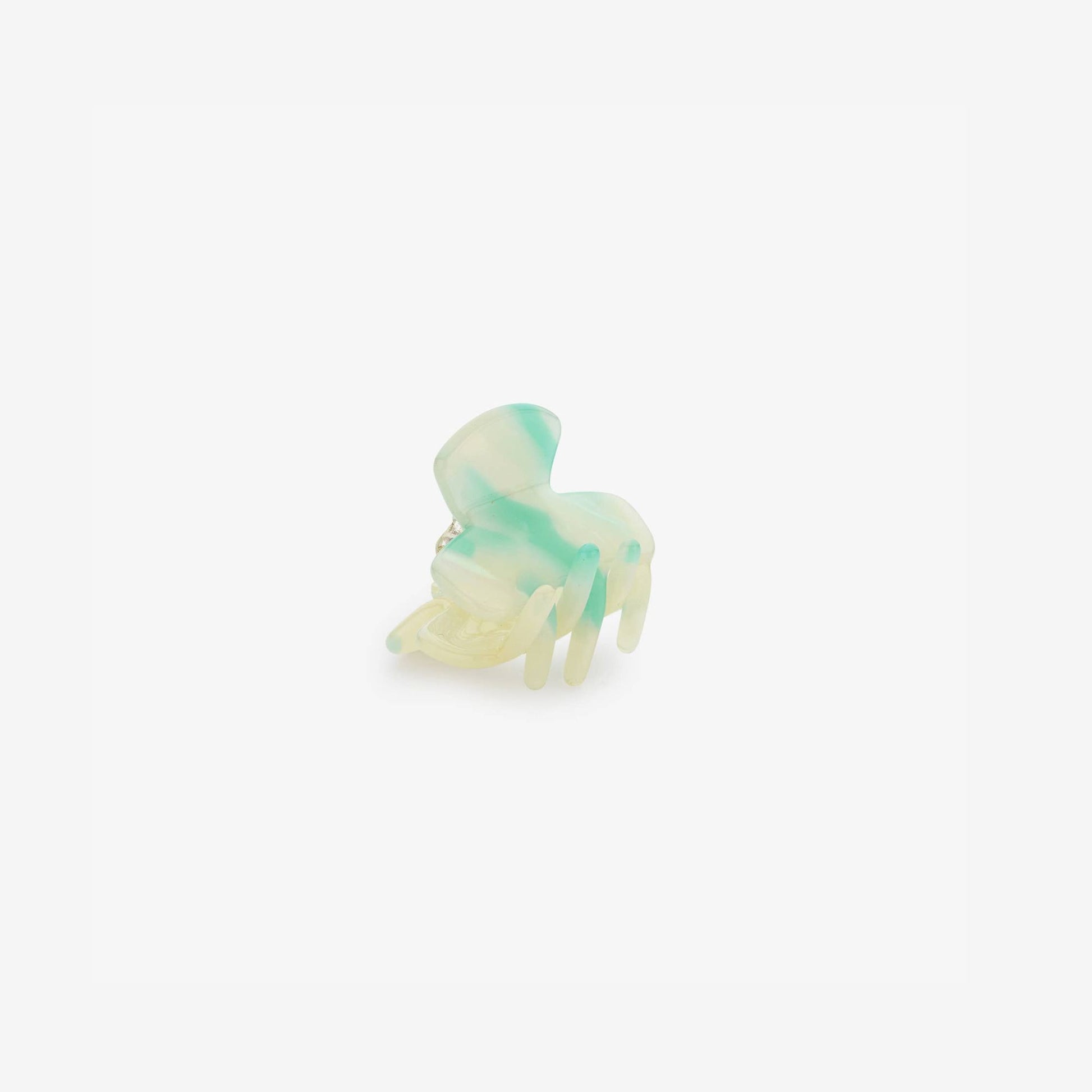 Diese süße Damen Haarspange besteht aus türkisem/weißem Acryl. Die Länge beträgt 4,2 cm und die Breite 3,5 cm.