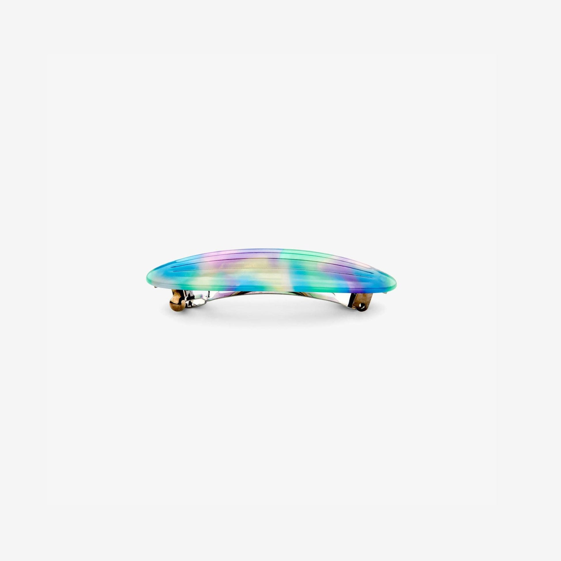 Die Damen Haarspange ist 8,7 cm lang und 3 cm breit. Die Haarspange hat einen schönen Perlmutt-Effekt, eine ovale Form und ein geripptes Detail.