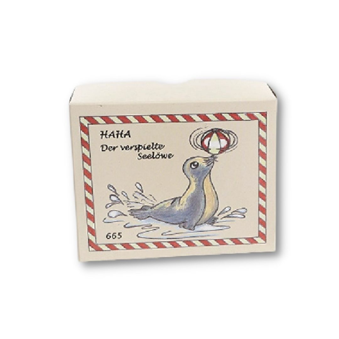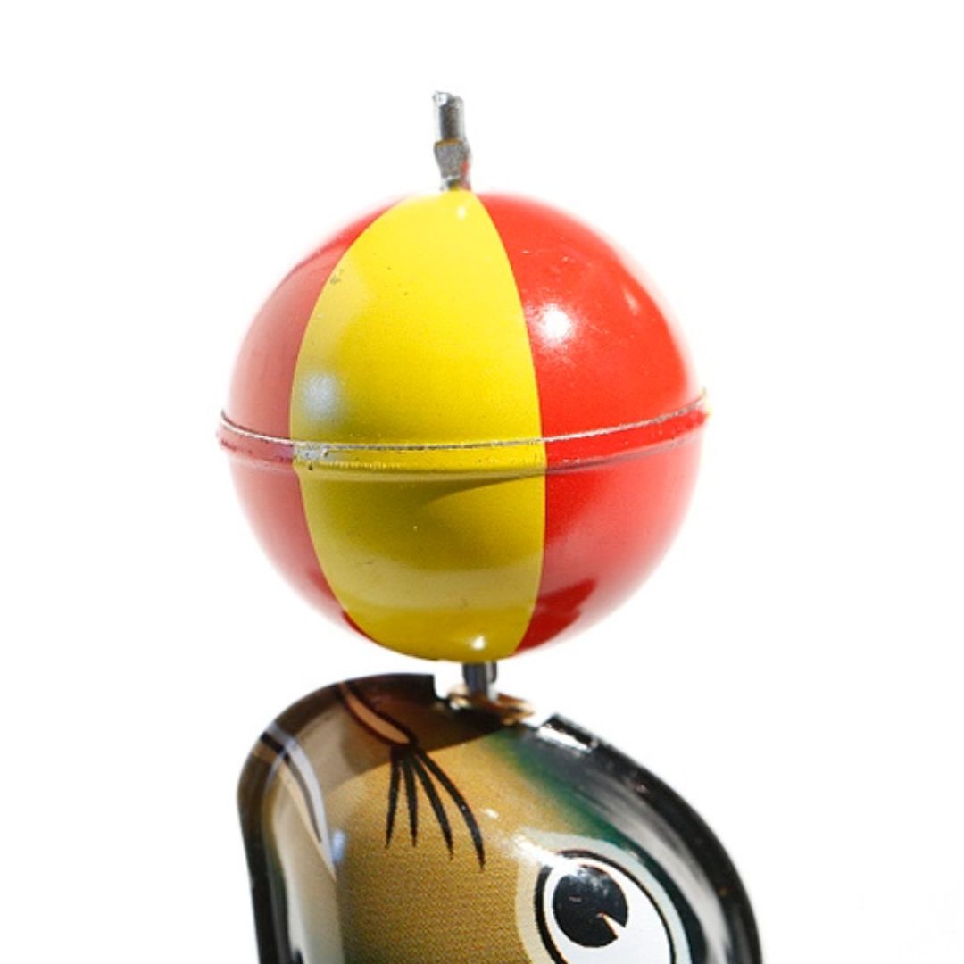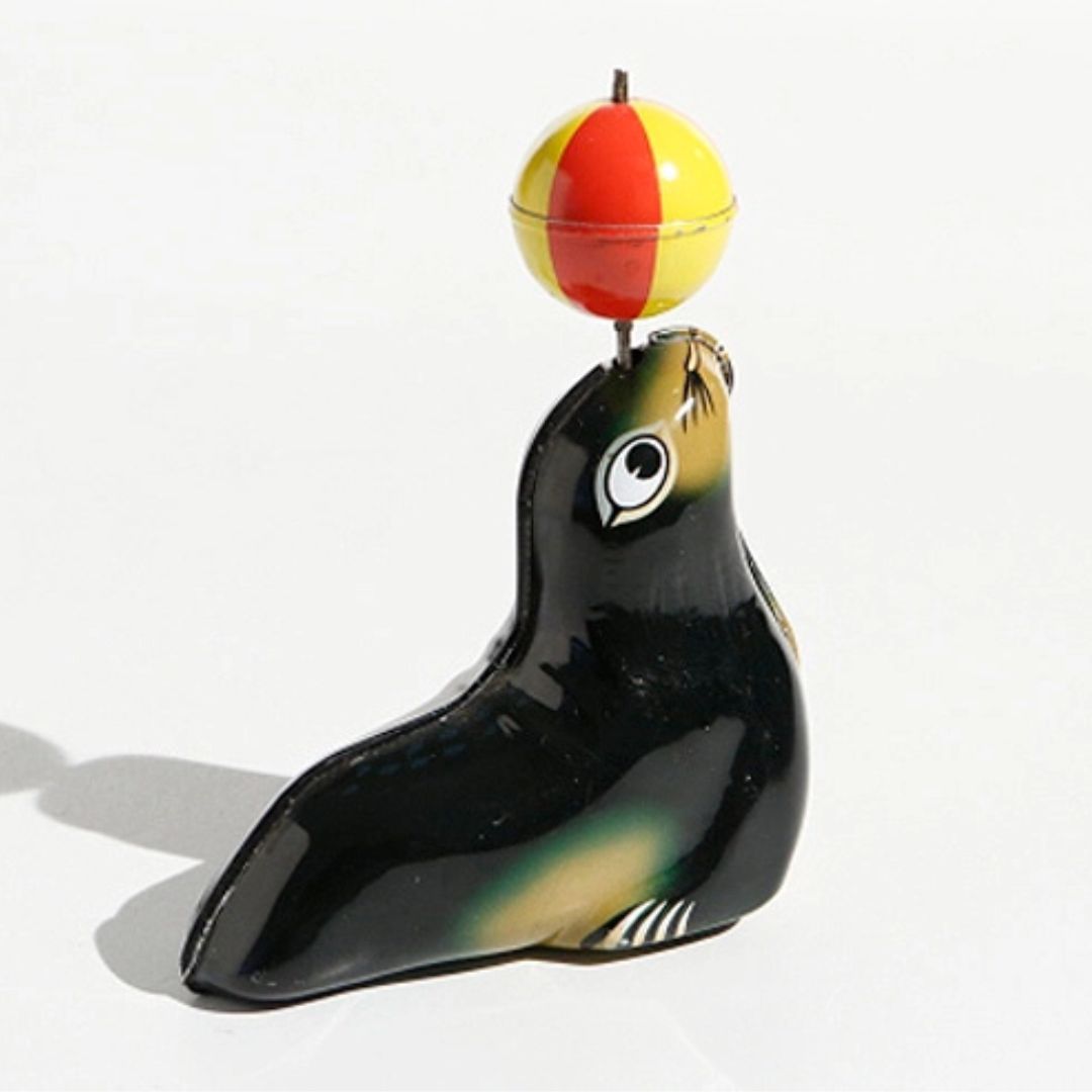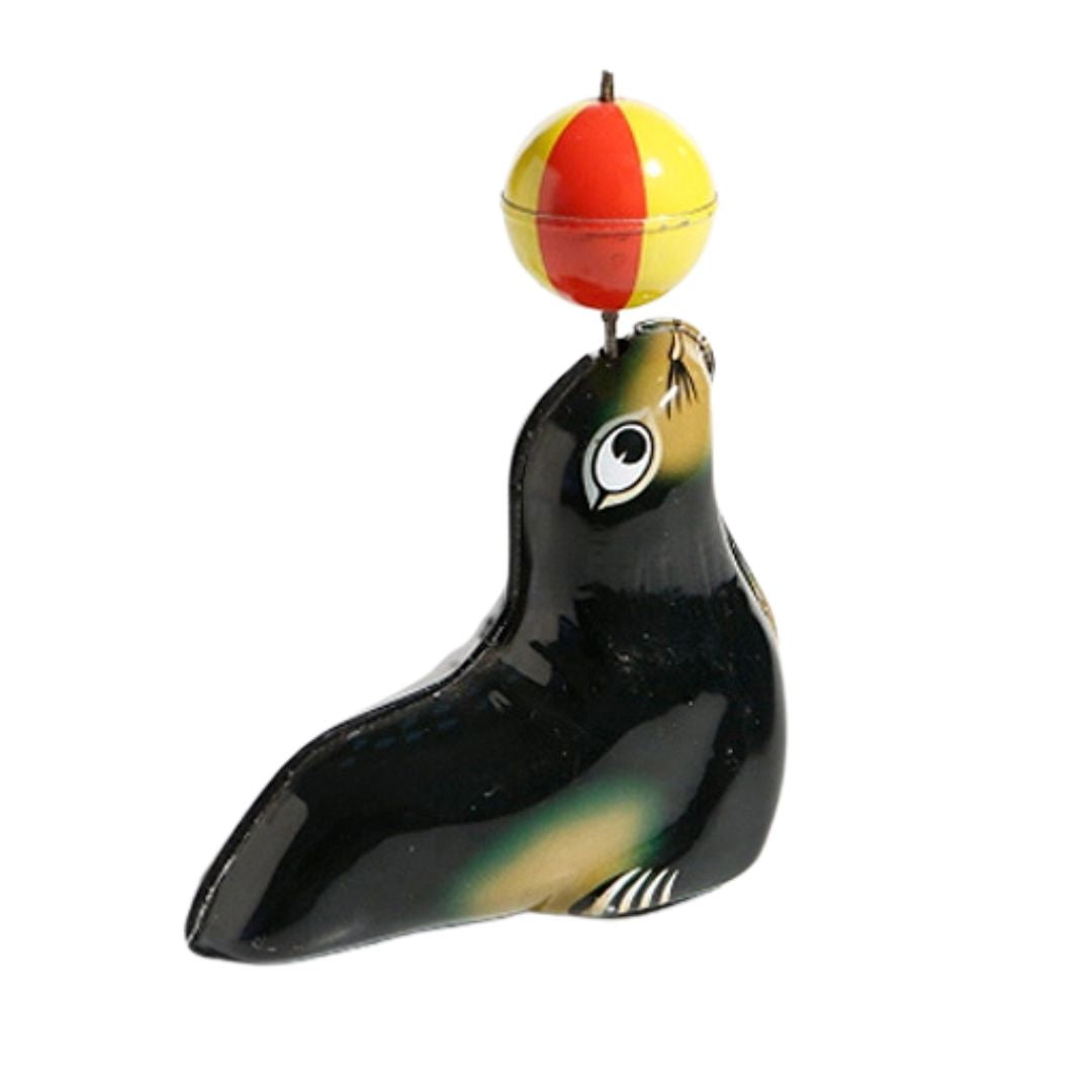 Nach dem Aufziehen mit dem im Lieferumfang enthaltenen Aufziehschlüssel bewegt sich der Seelöwe elegant über den Tisch, während der Ball anmutig auf seiner Schnauze kreist.