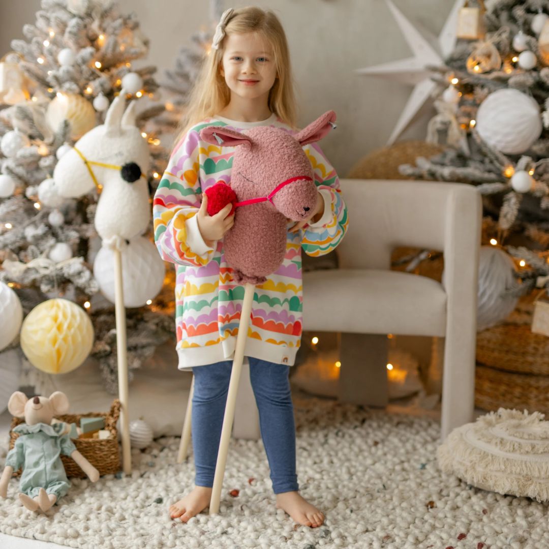 Das Steckenpferd verbindet Spielspaß, Fantasie und hochwertige Verarbeitung in einem liebevoll gestalteten Produkt.