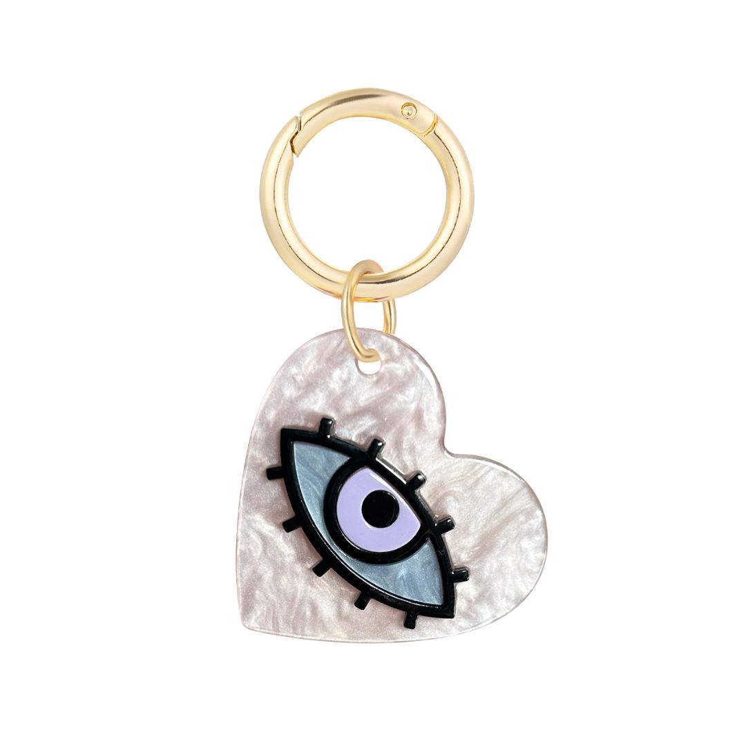 Herzförmiger Schlüsselanhänger 'Seeing Eye' weiß