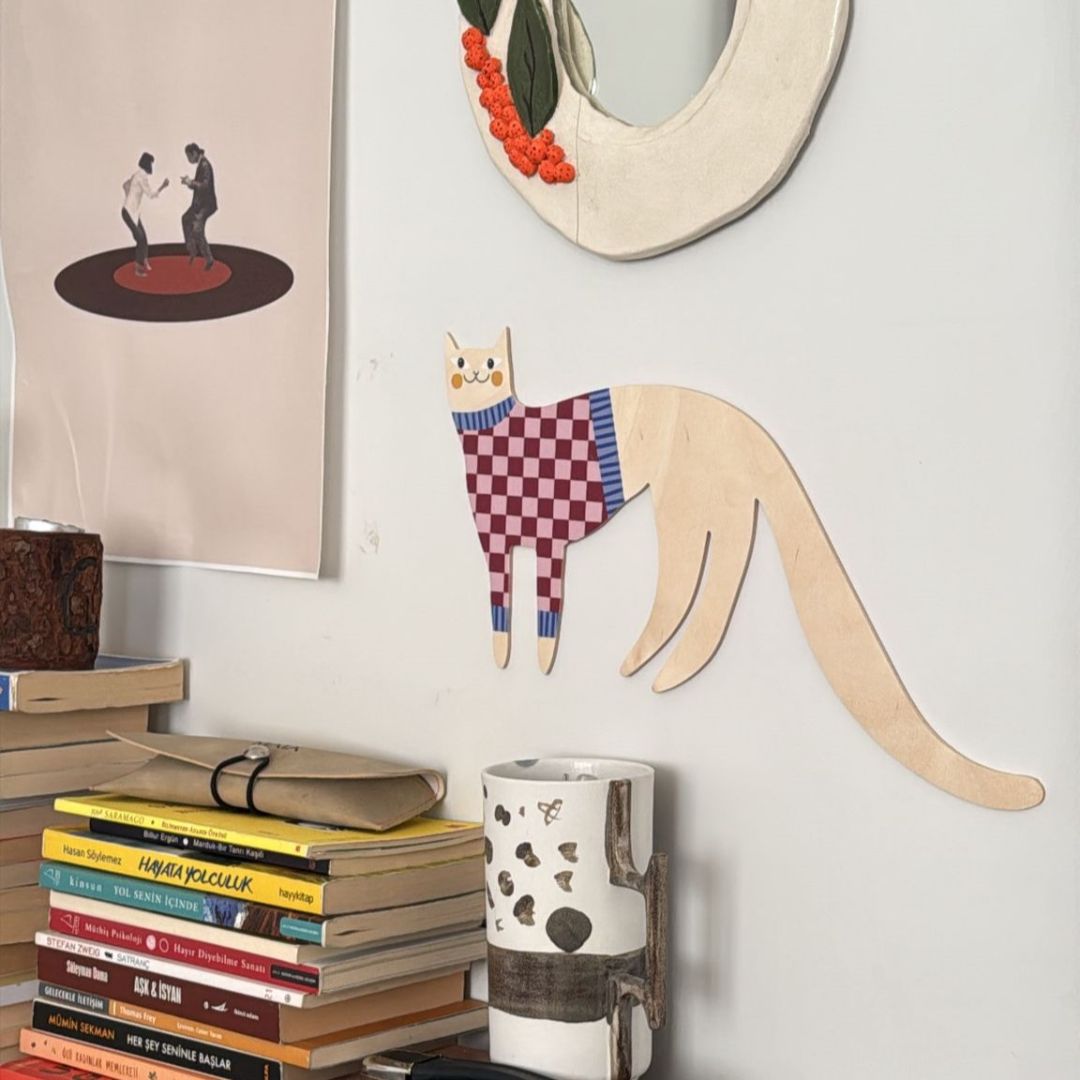 Hölzerne Wanddekoration 'NUDDLE THE CAT'