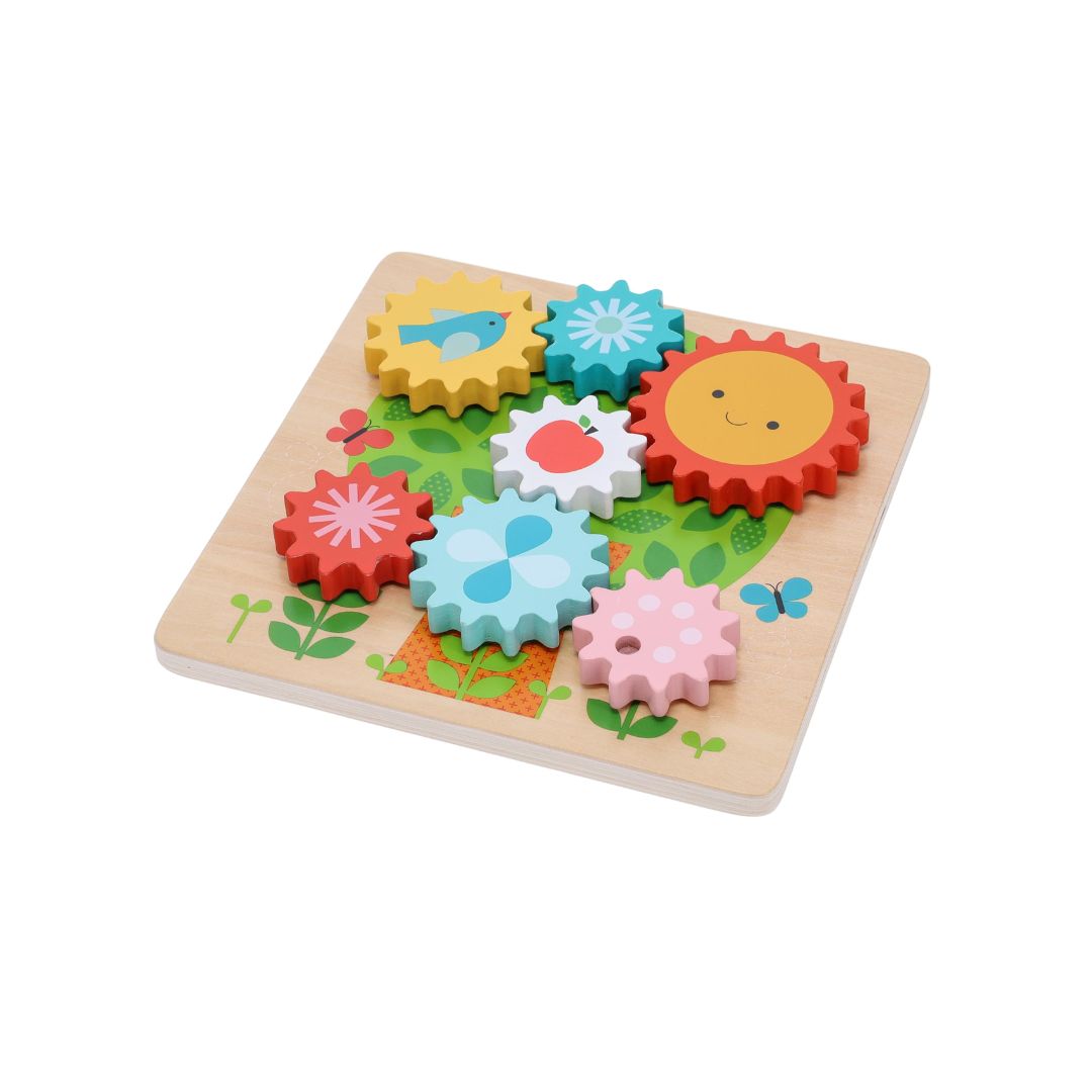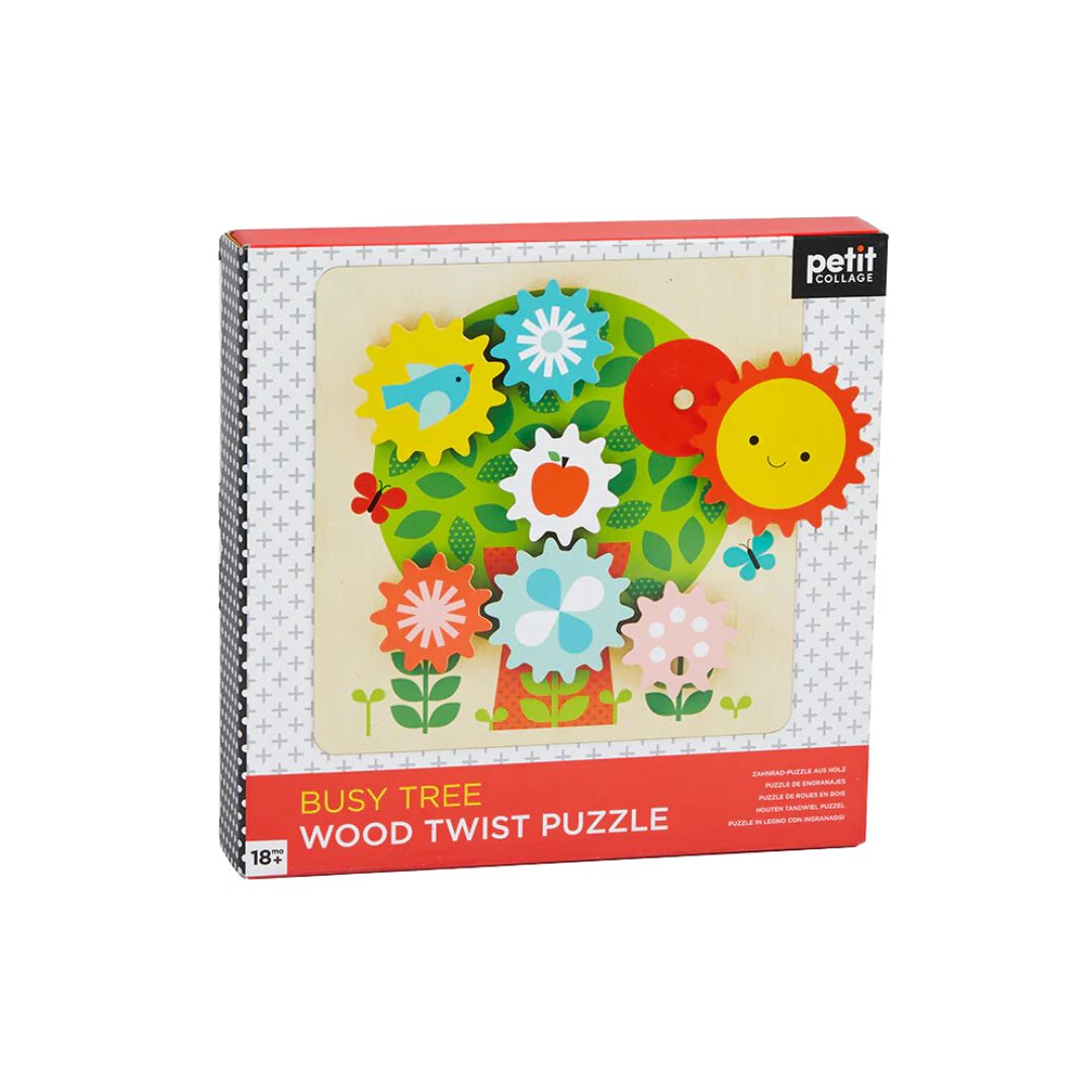 Dieses Busy Tree Wooden Twist Puzzle besteht aus 7 klobigen, zahnradförmigen Teilen. Drehe ein Puzzleteil und die ineinander greifenden Zahnräder setzen das ganze Puzzle in Bewegung!