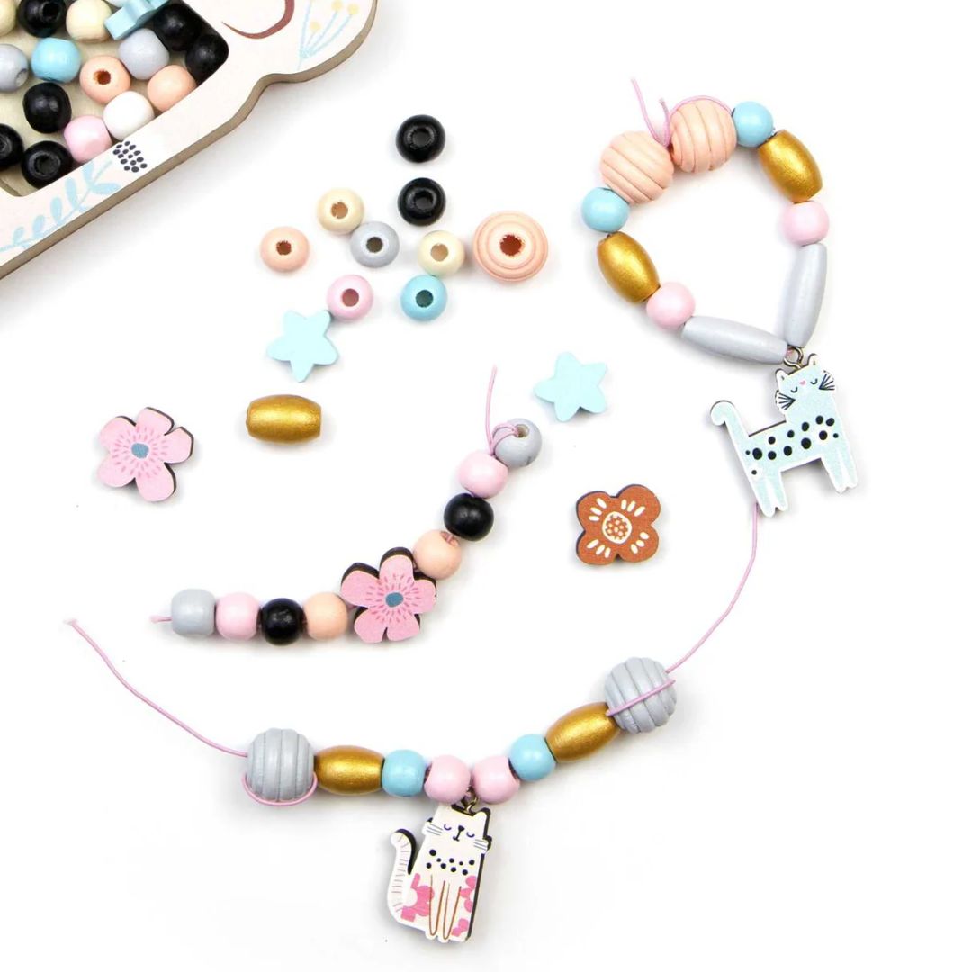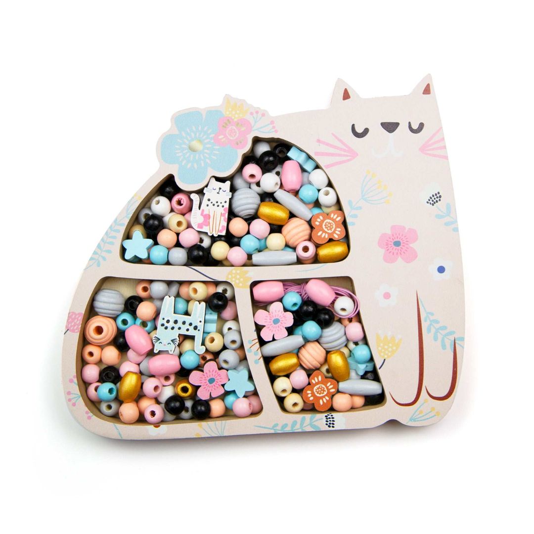 Holzperlen in Pastellfarben in Katzenbox 170 Stück