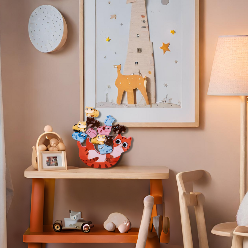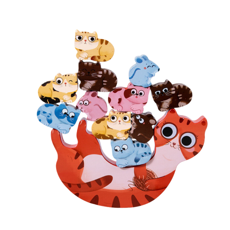 Holzstapel-Katzen-Balance-Spiel