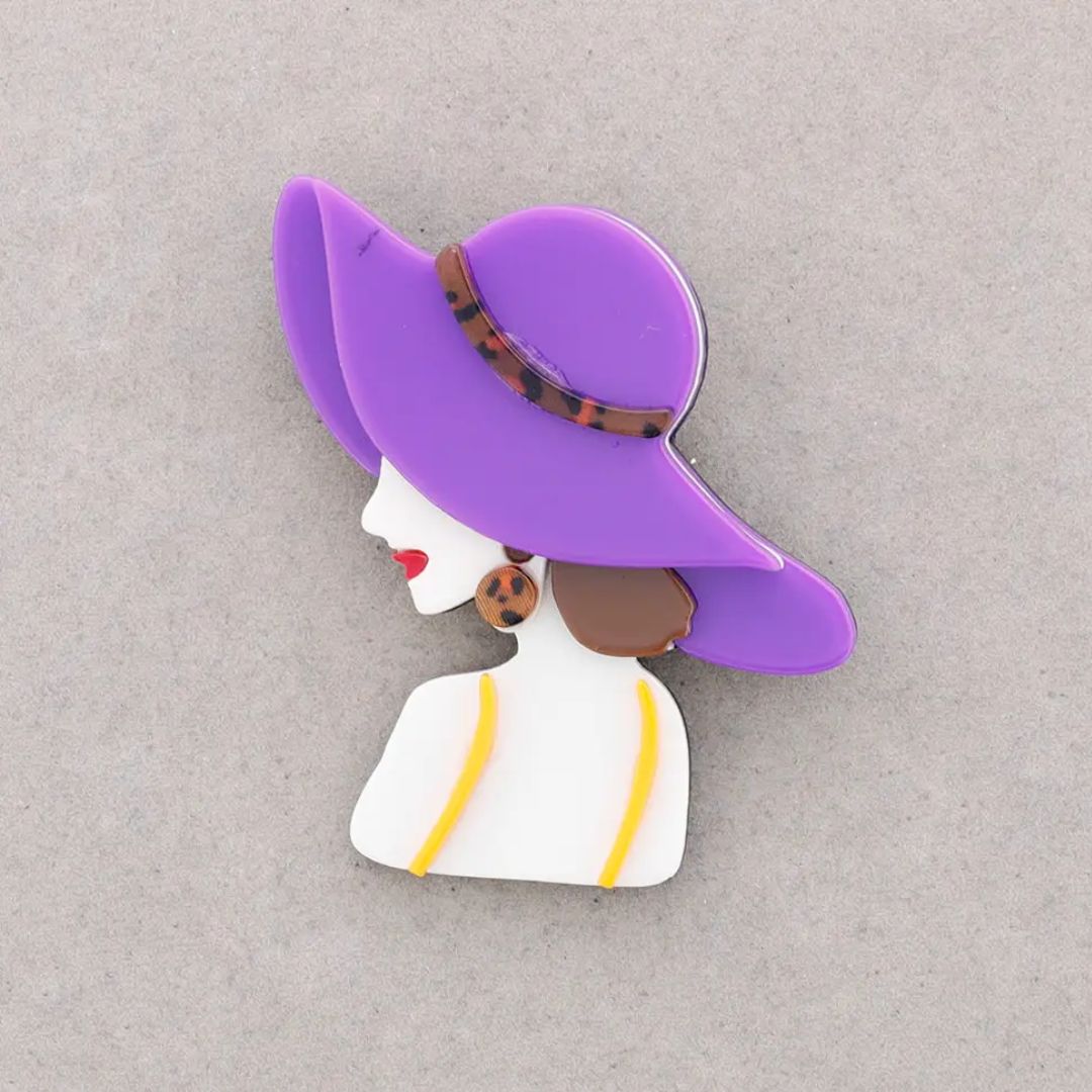 Charakterbrosche aus Harz 'Hut' rot