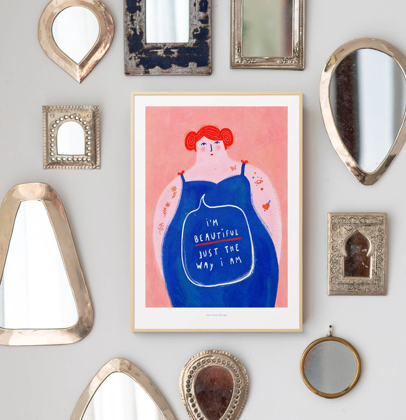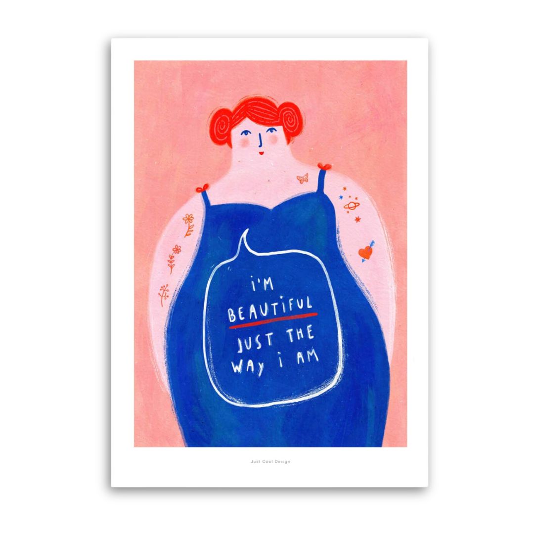 A4 Illustration Frauen Kunstdruck 'Ich bin schön' - Illustrationsposter