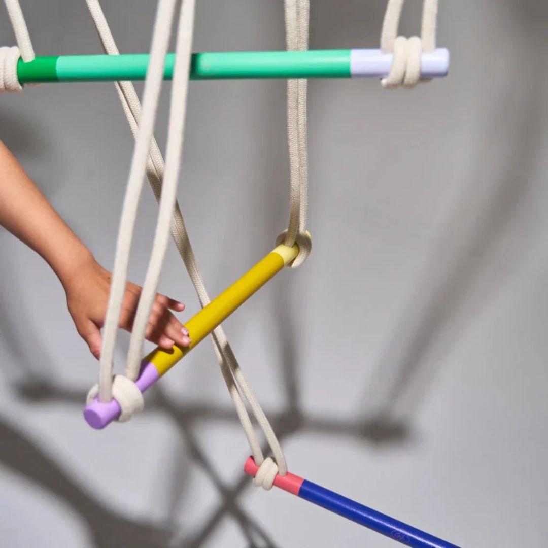 Gemeinsam schaffen diese drei Farben eine harmonische Balance aus Wärme und Ausdruckskraft. Das Trapez wird so nicht nur zum Bewegungsgerät, sondern auch zu einem stilvollen Design-Element im Kinderzimmer.