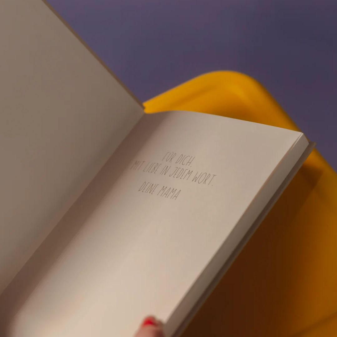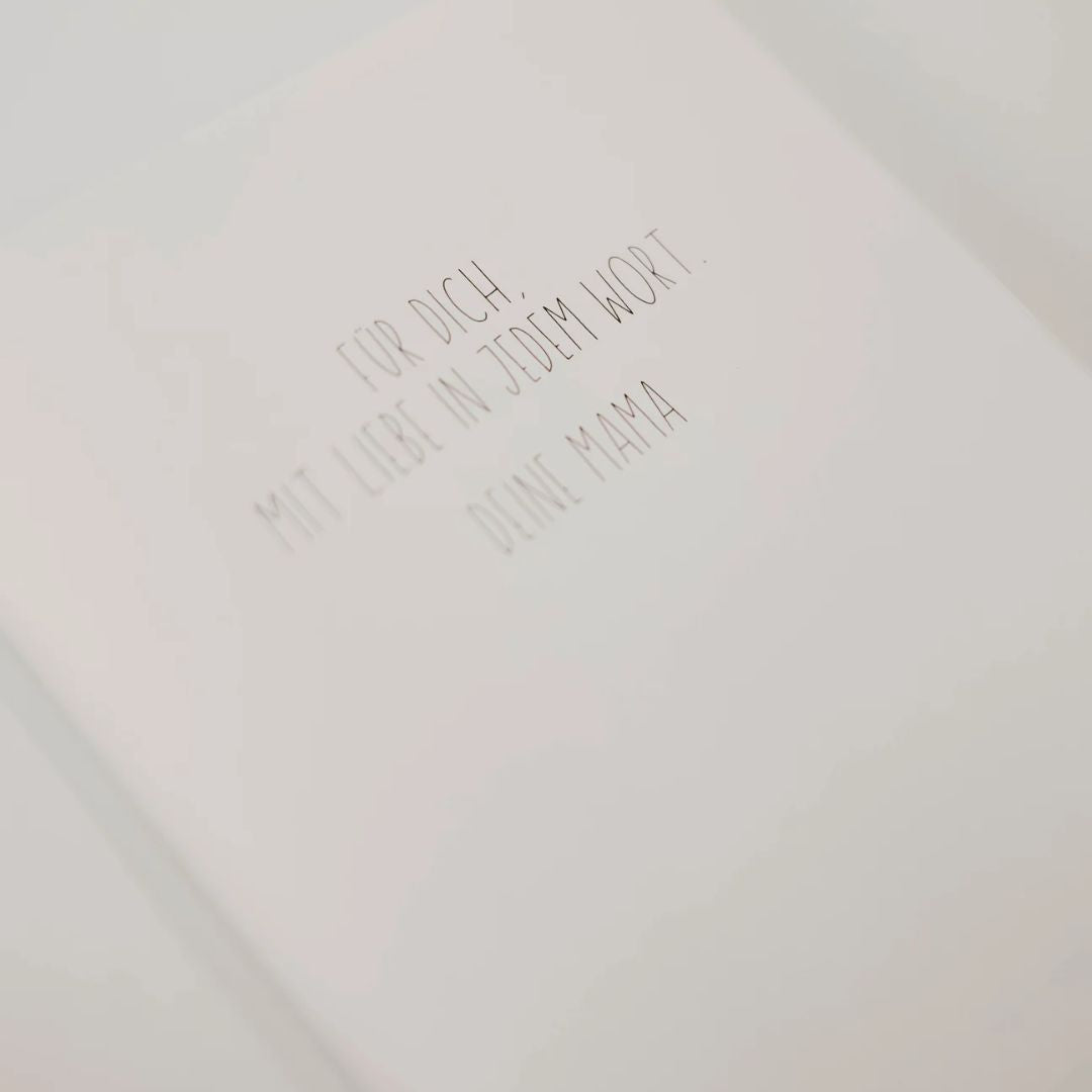 „In Liebe, für dich“ ist mit einer hochwertigen Leinenbindung versehen, die das Buch so langlebig macht wie die Liebe, die darin steckt. Die Leinenbindung sorgt nicht nur für ein edles, ansprechendes Aussehen, sondern macht das Buch auch besonders widerstandsfähig gegenüber dem täglichen Gebrauch. Jedes Detail wurde sorgfältig durchdacht, damit dieses Buch viele Jahre lang als wertvolles Erinnerungsstück bestehen kann.