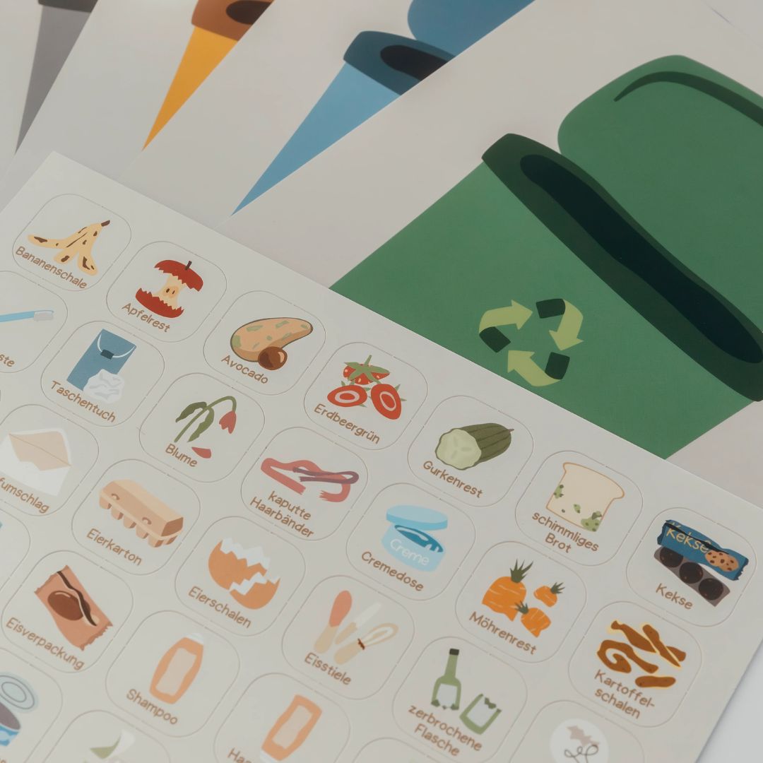 Symbolkärtchen mit Alltagsabfällen – liebevoll illustriert und leicht verständlich