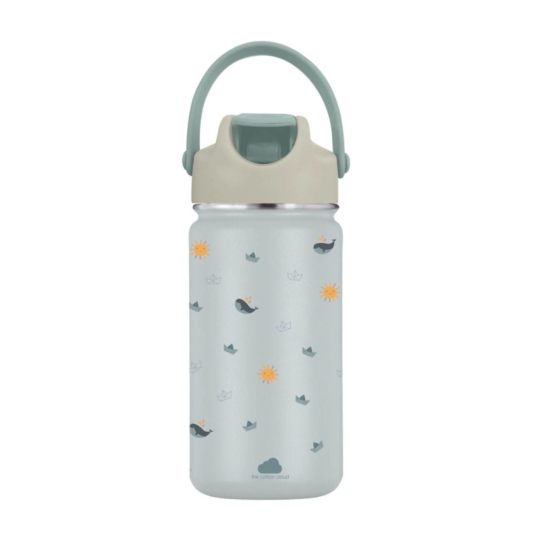 Unsere brandneue und verbesserte Edelstahlflasche ist ideal für den Kindergarten, die Schule oder Ausflüge. Das charakteristische Musterdesign von The Cotton Cloud verleiht dieser isolierten Flasche nicht nur einen stylischen Look, sondern sie hält Getränke im Sommer angenehm kühl und im Winter wohltuend warm. Hergestellt aus robustem, hochwertigem 18/8-Edelstahl, ist sie auslaufsicher sowohl im geöffneten als auch im geschlossenen Zustand. Der bequeme Silikongriff ermöglicht ein leichtes Tragen, und der Strohhalm besteht aus weichem und hochwertigem LFGB-Silikon. Einfach zu bedienen – einfach beißen und schlürfen!