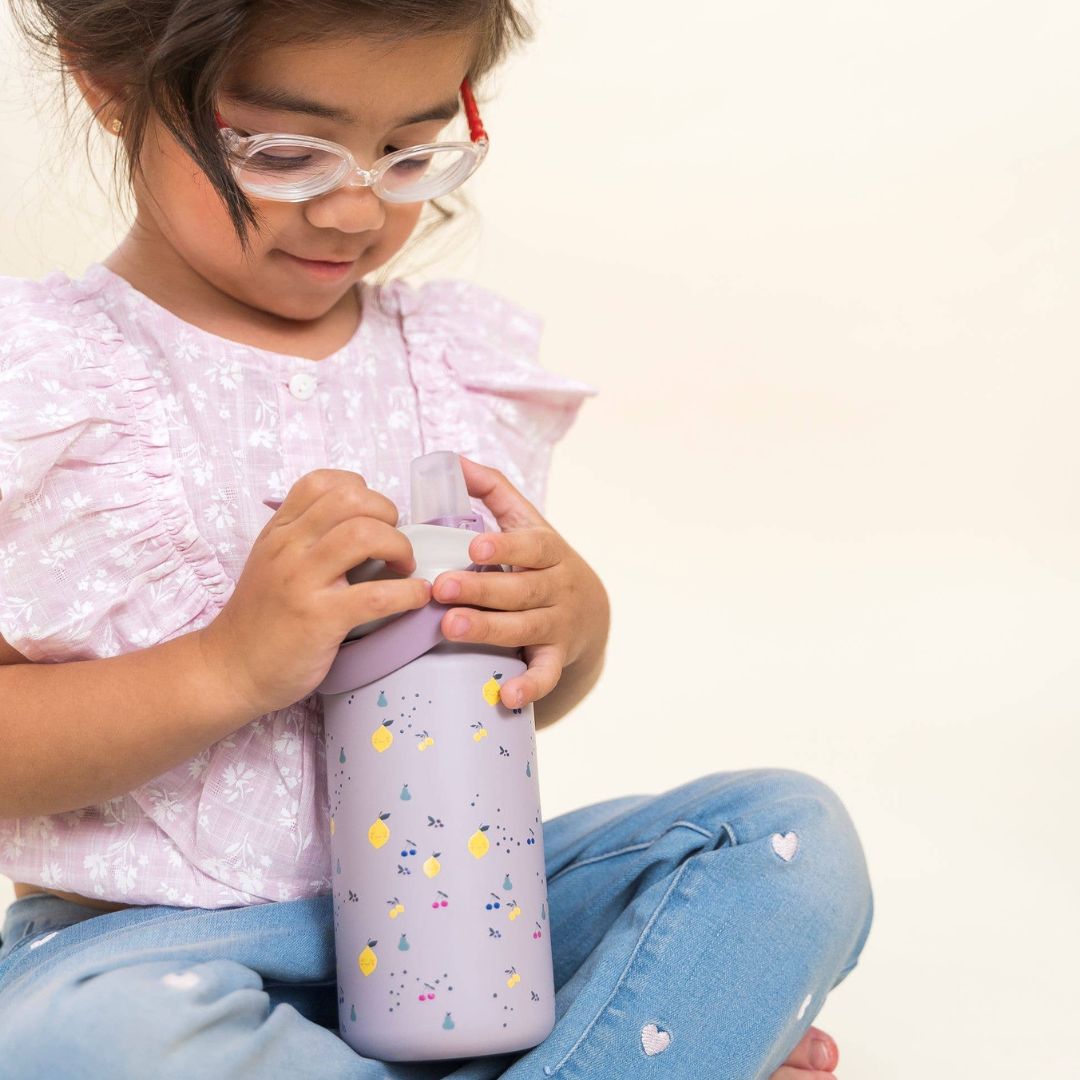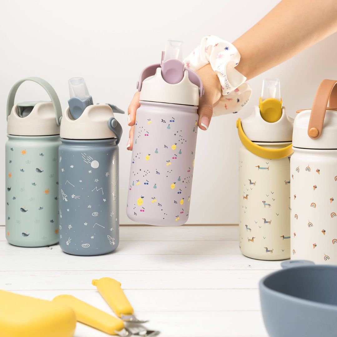 Unsere brandneue und verbesserte Edelstahlflasche ist ideal für den Kindergarten, die Schule oder Ausflüge. Das charakteristische Musterdesign von The Cotton Cloud verleiht dieser isolierten Flasche nicht nur einen stylischen Look, sondern sie hält Getränke im Sommer angenehm kühl und im Winter wohltuend warm. Hergestellt aus robustem, hochwertigem 18/8-Edelstahl, ist sie auslaufsicher sowohl im geöffneten als auch im geschlossenen Zustand. Der bequeme Silikongriff ermöglicht ein leichtes Tragen, und der Strohhalm besteht aus weichem und hochwertigem LFGB-Silikon. Einfach zu bedienen – einfach beißen und schlürfen!