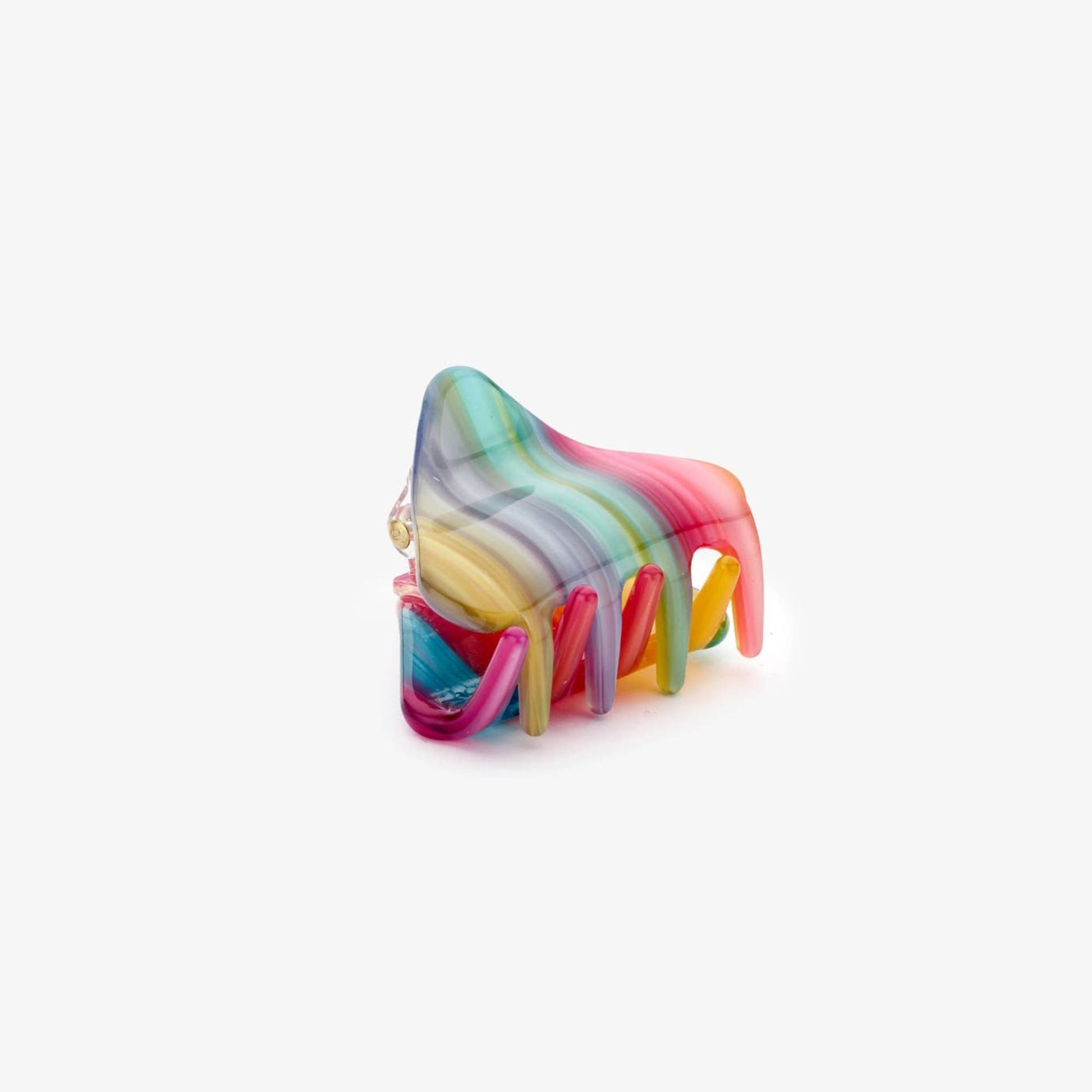 Diese mehrfarbene Damen Haarklammer besteht aus Acryl und hat die Form eines Dreiecks. Die Länge beträgt 3,4 cm und die Breite 2,8 cm.